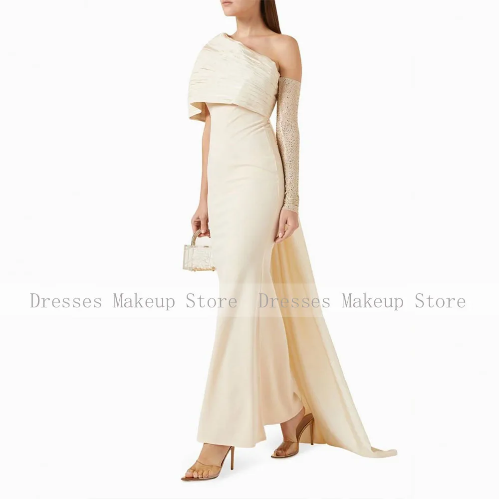 Robe de soirée arabe saoudienne une épaule plissée sirène robes de soirée pour femmes Maxi longueur cheville trompette robes de soirée formelles