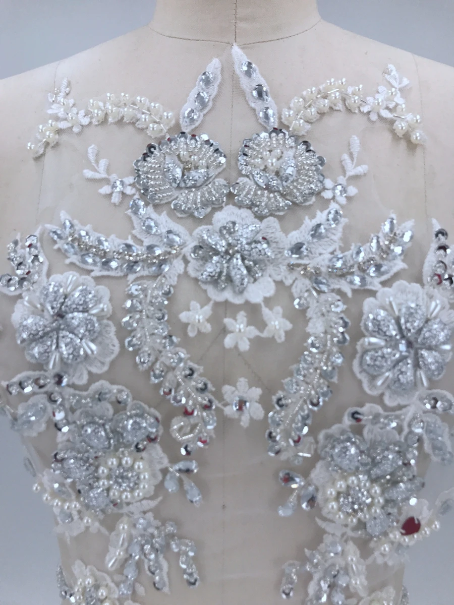 Robe de soirée brillante en tissu perlé, Tulle appliqué, décoration de vêtements de luxe, paillettes faites à la main, strass, matériau diamant chaud |