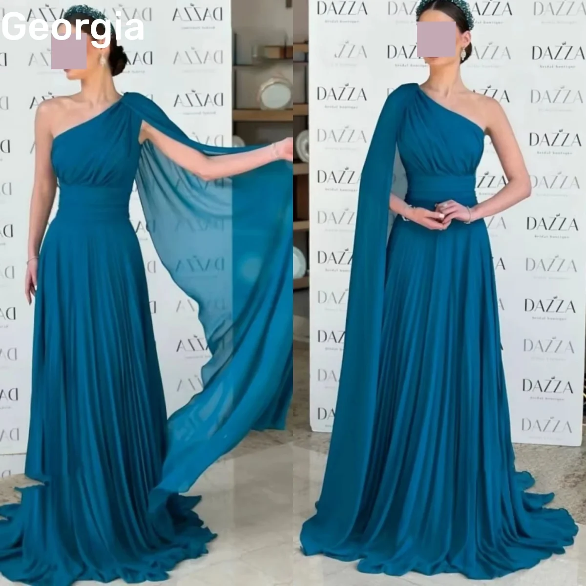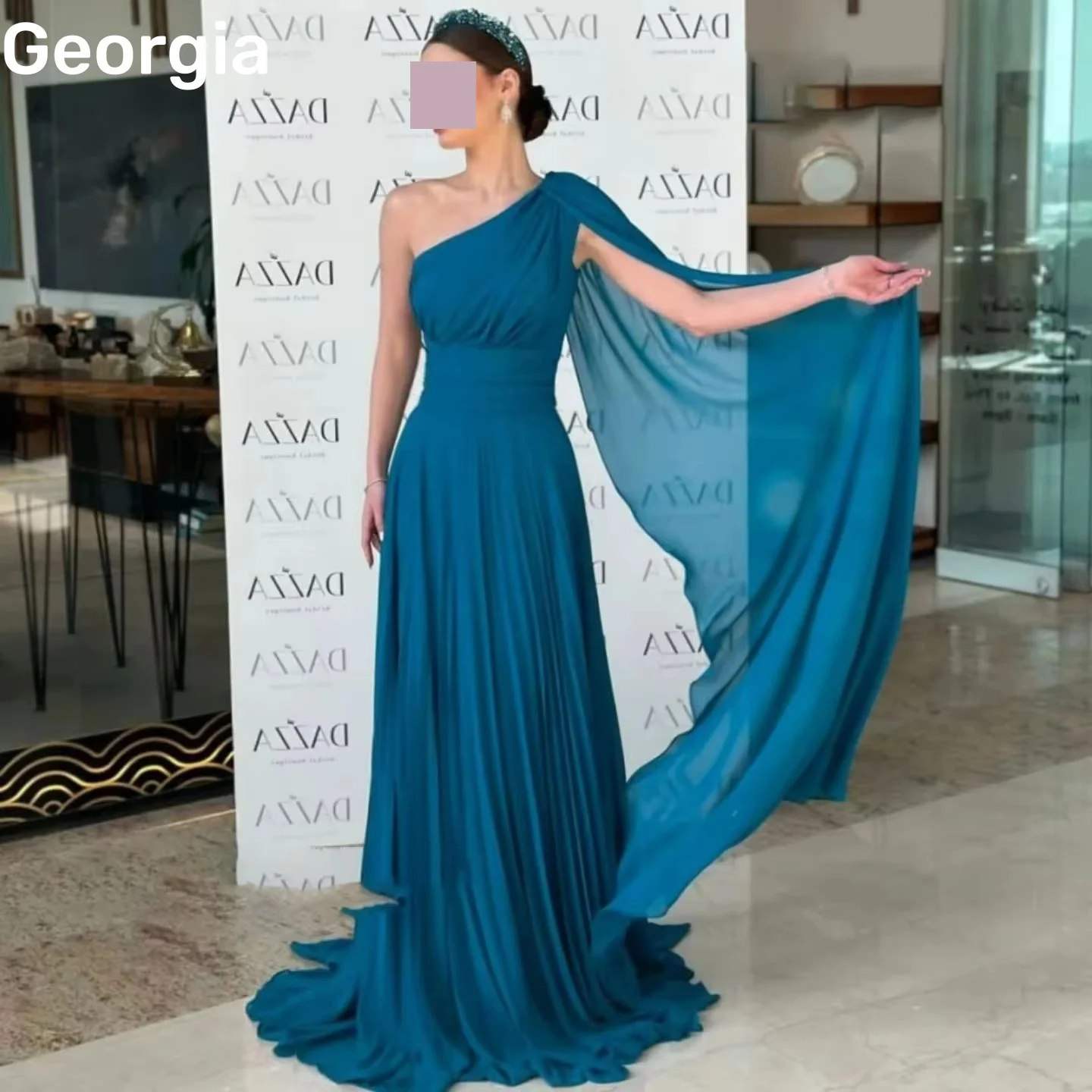 Robe de soirée de luxe bleue, ligne a, dubaï, personnalisée, asymétrique épaule dénudée, pour bal de promo, bretelles à volants, longueur au sol, Occasion formelle