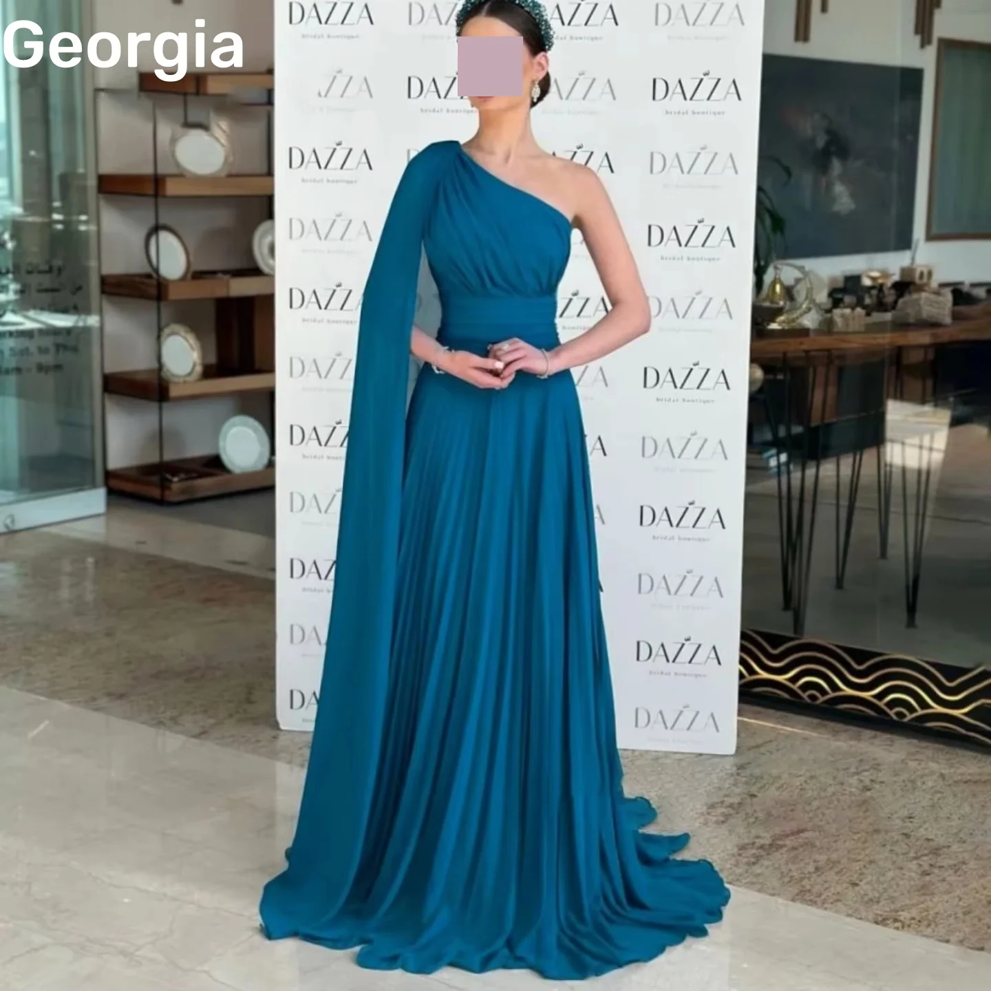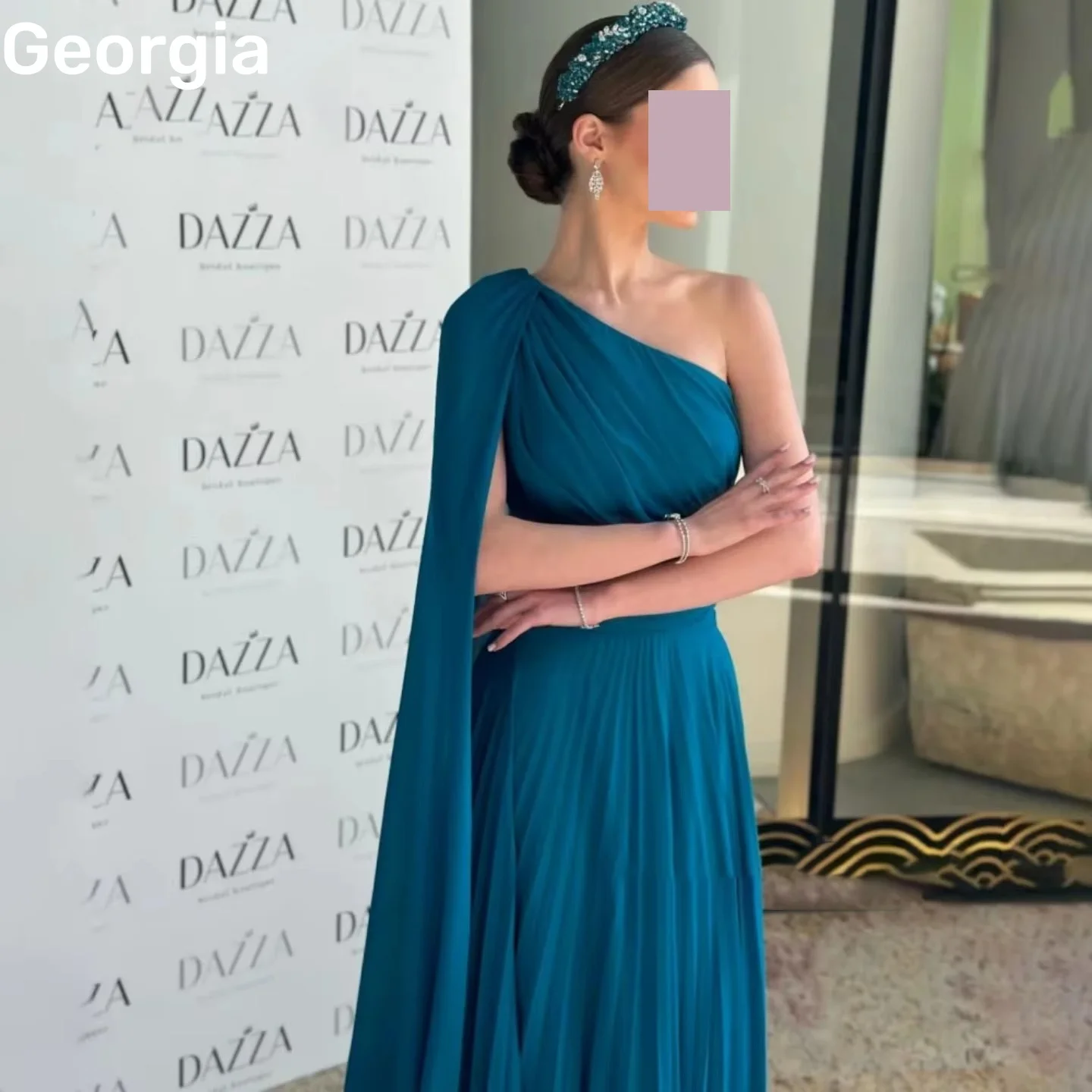 Robe de soirée de luxe bleue, ligne a, dubaï, personnalisée, asymétrique épaule dénudée, pour bal de promo, bretelles à volants, longueur au sol, Occasion formelle |