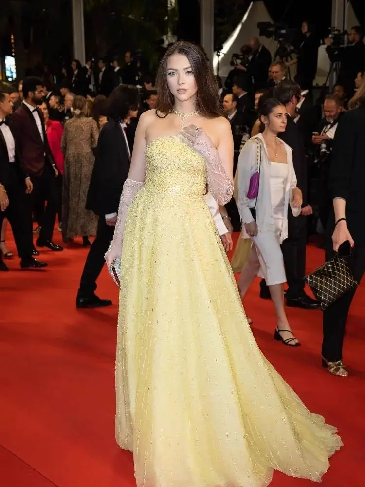 "Cette robe de soirée est absolument magnifique ! La couleur jaune perlée et les détails scintillants lui donnent une allure très élégante et raffinée. J'ai adoré porter cette tenue lors d'un événement formel en Arabie Saoudite, elle m'a permis d'être remarquée tout en restant dans les codes vestimentaires locaux. Seul petit bémol, les gants fournis étaient un peu trop larges pour mes mains, mais cela n'a en rien gâché mon expérience. Je recommande vivement cette pièce de haute qualité, elle vaut vraiment le coup !"