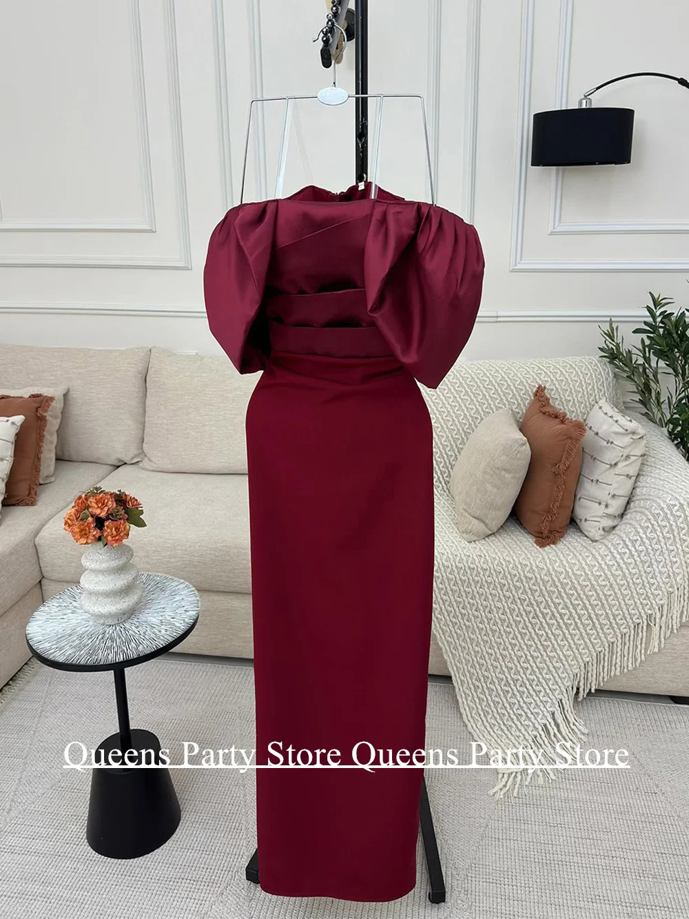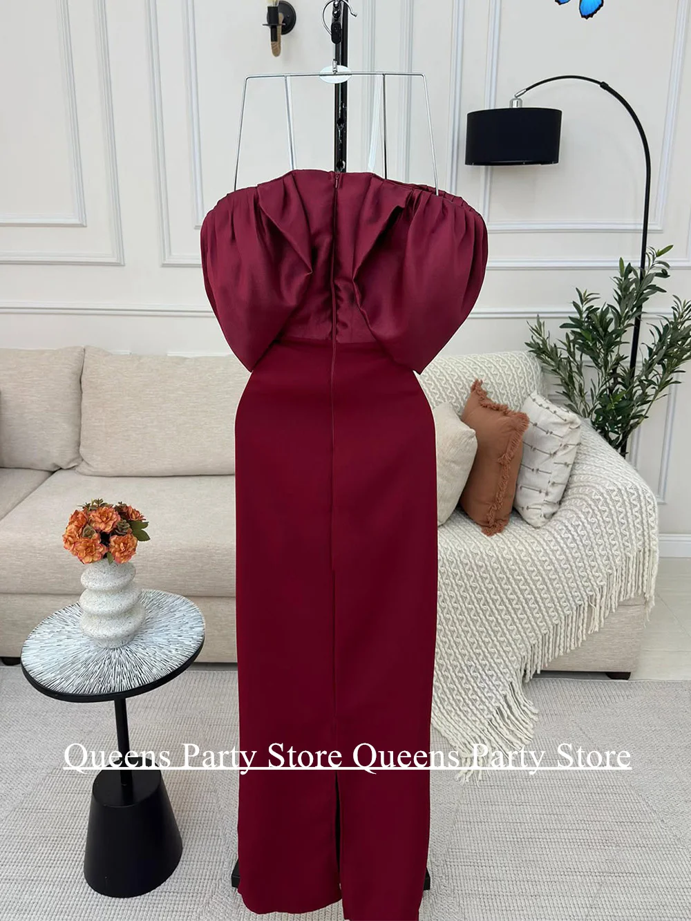 Robe de soirée droite plissée personnalisée, robes d'occasion formelles, robe de soirée fendue dans le dos, arabe simple |