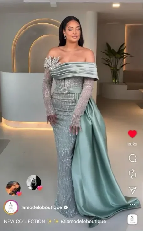 "Cette robe de soirée est tout simplement magnifique ! J'ai été absolument séduite par son design élégant et raffiné, avec ces belles perles arabes qui subliment l'ensemble. La coupe est parfaite, les épaules dénudées apportent une touche glamour très élégante. Seul petit bémol, la robe était un peu lourde à porter toute la soirée, mais cela n'a pas gâché mon plaisir de la porter pour cet événement spécial. Je la recommande vivement !"