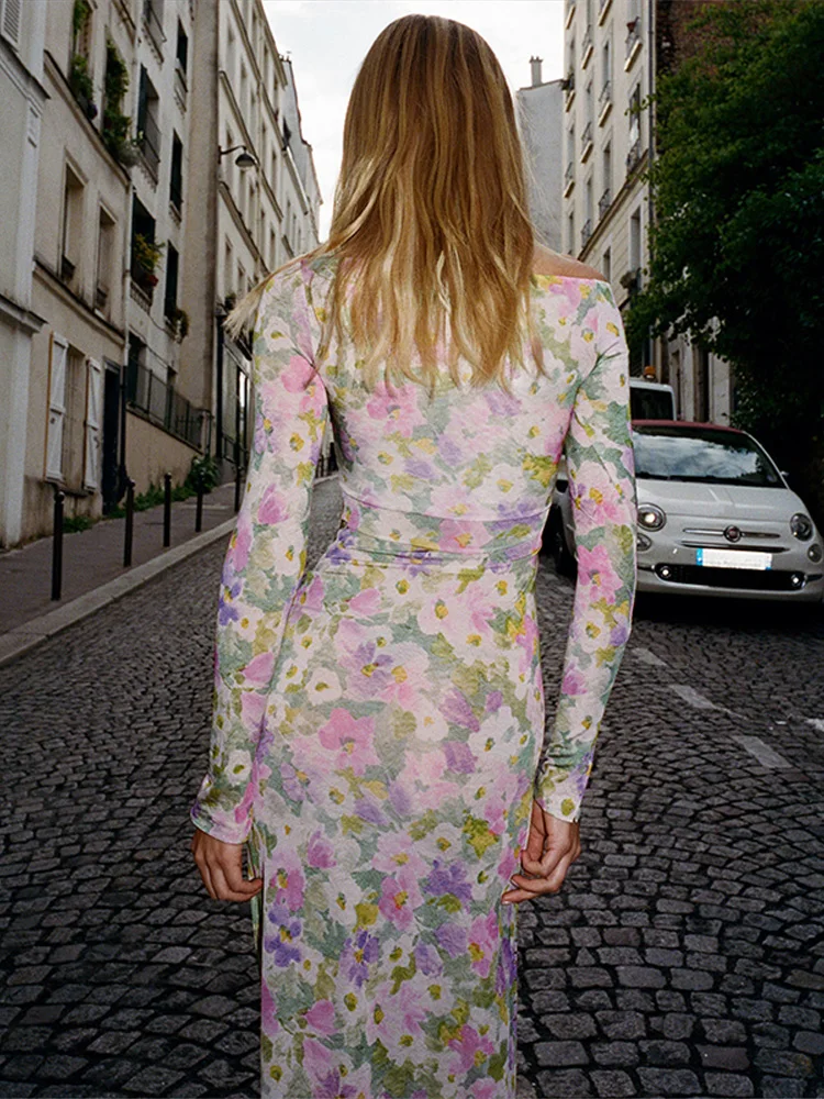 Robe de soirée élégante pour femmes, asymétrique épaule dénudée, manches longues, Patchwork, boutons fendus, pull, automne hiver, robe Maxi en tricot, 2025 |