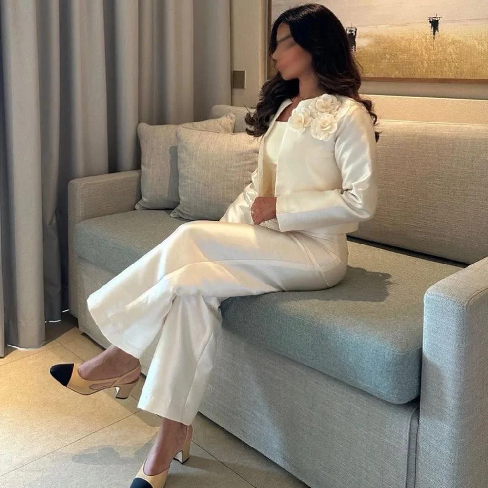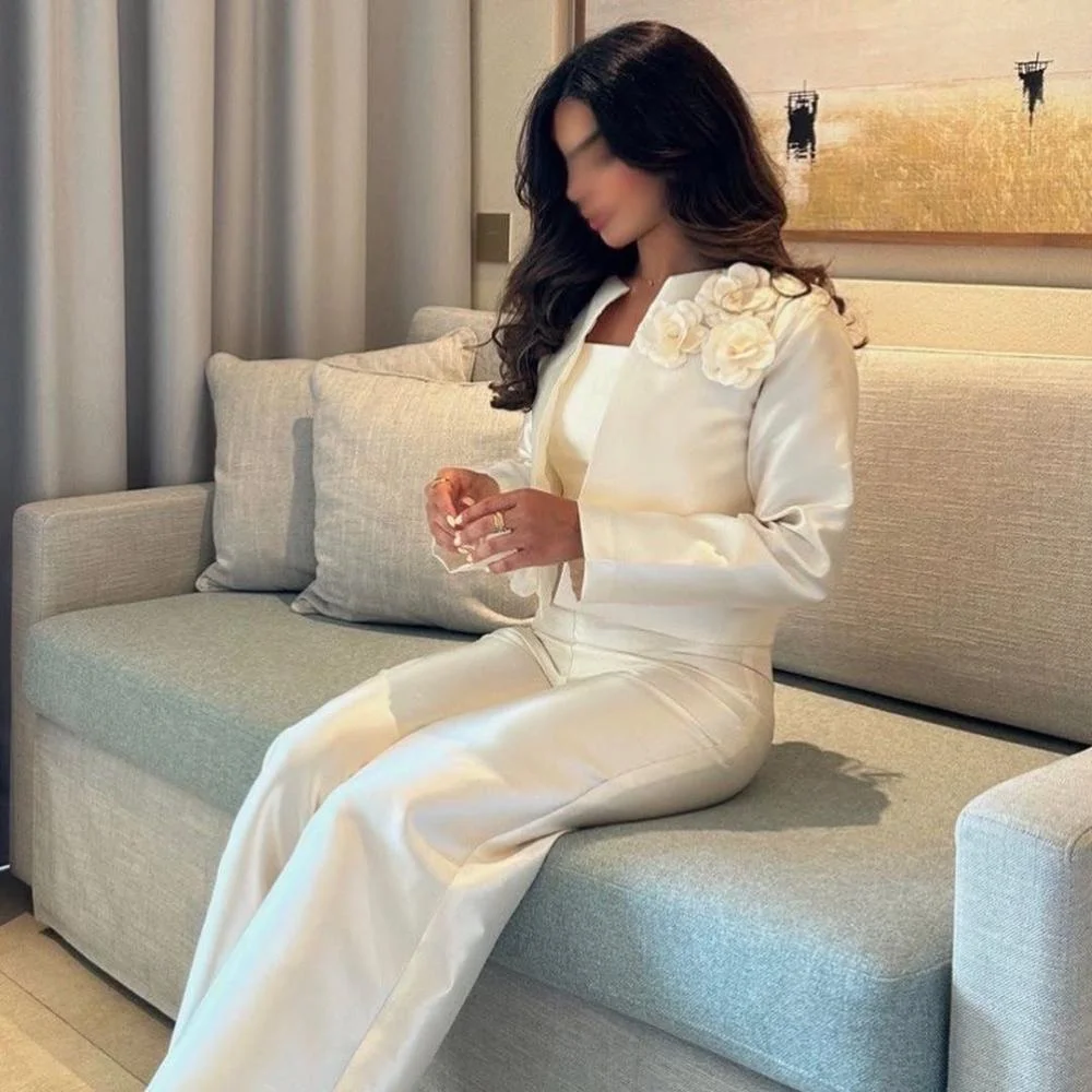 Robe de soirée en satin à manches longues, combinaison élégante, personnalisée, fleurs, rinçage-longueur, robe de Rharabe saoudien, robes formelles arabes |