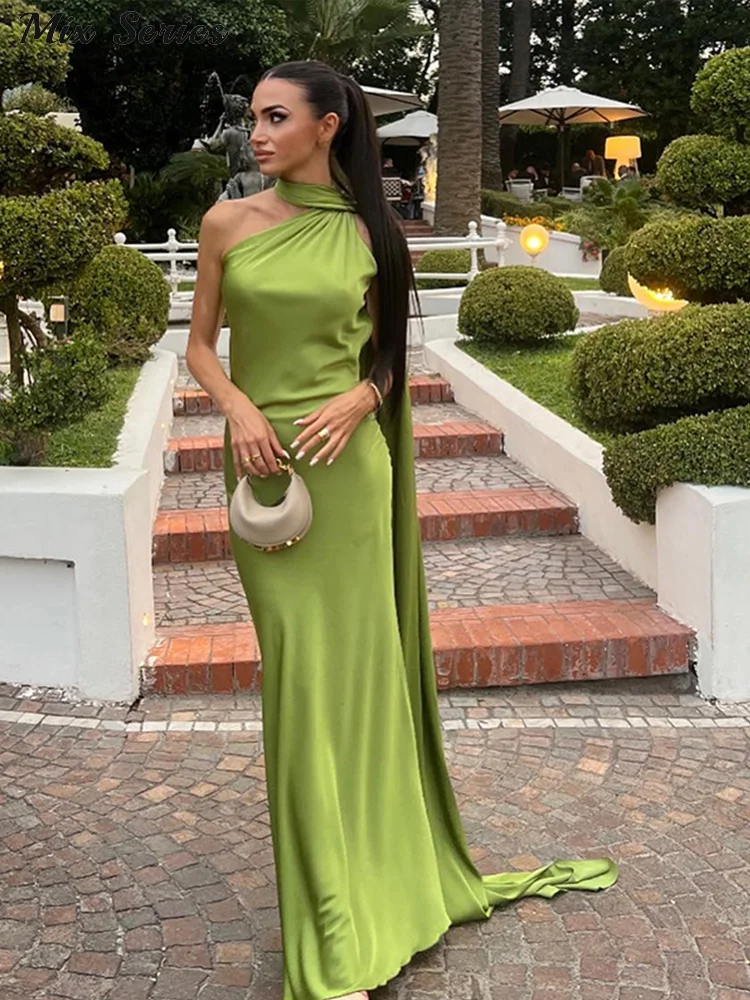 Robe de soirée en Satin pour femmes, Sexy, col licou, élégante, dos nu, épaules dénudées, sans manches, couleur unie, nouvelle collection automne 2025