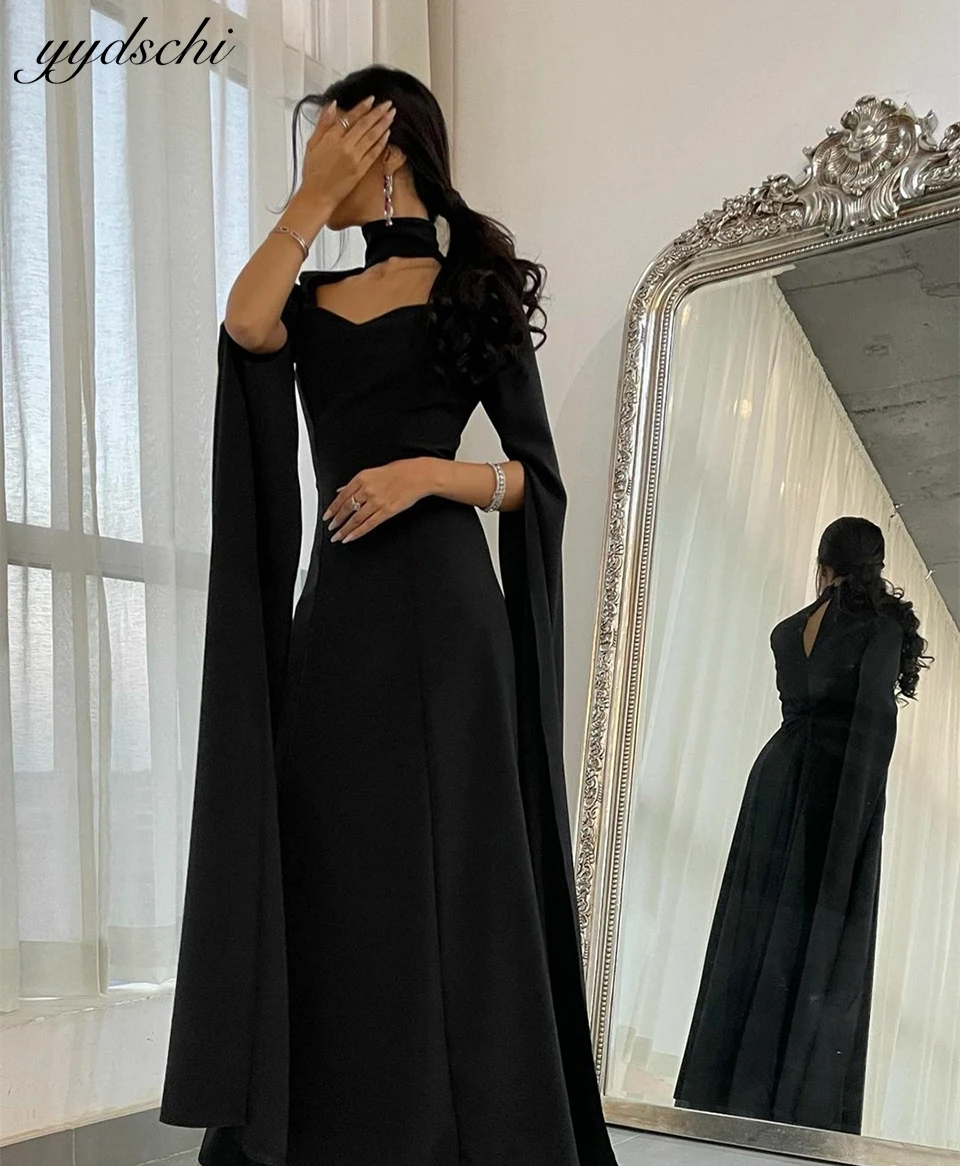 Robe de soirée musulmane noire élégante, manches longues, ligne a, arabe dubaï, col haut, longueur au sol, longue robe de bal pour femmes, 2025 |