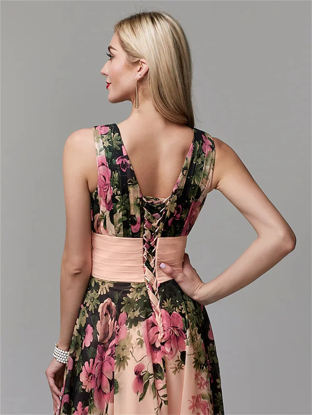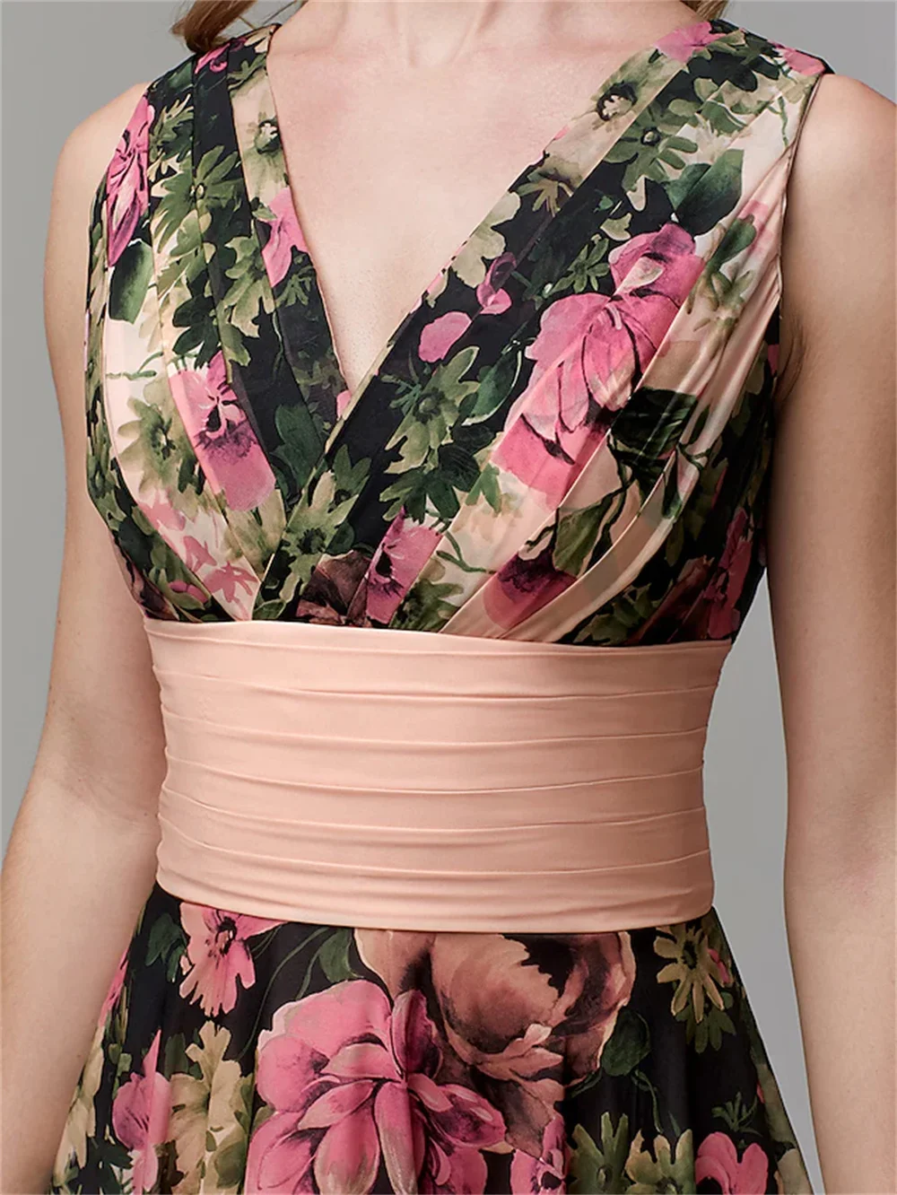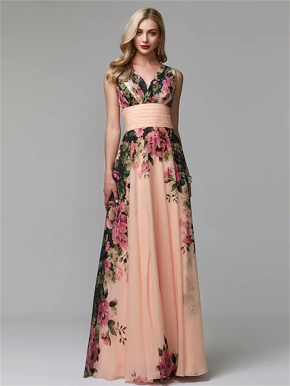 Robe de Soirée Personnalisée en Mousseline de Soie pour Femme, Tenue de Bal Élégante à Motif Floral, Coupe Trapèze, Col en V Froncé, Longueur au Sol, 2025 |