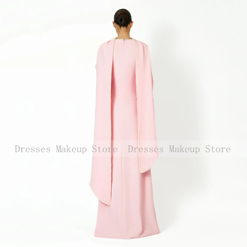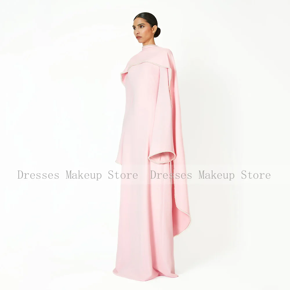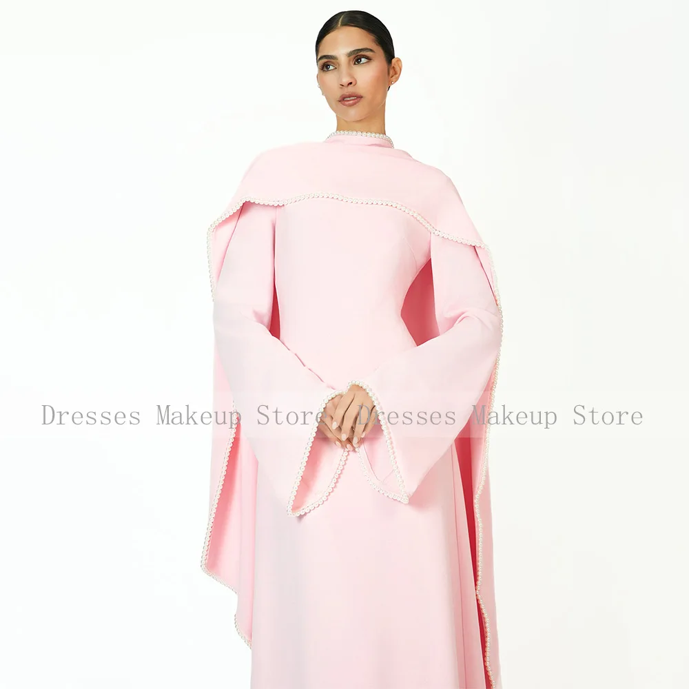 Robe de soirée saoudienne rose manches longues une ligne col rond robes de soirée modestes pour les femmes 2025 perles châle robe formelle moderne