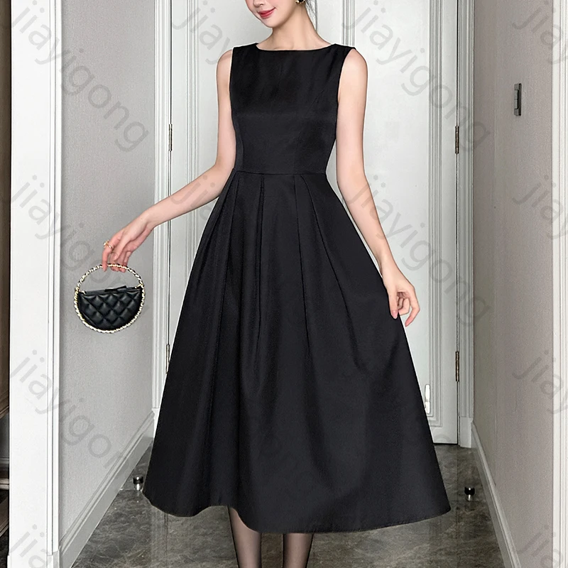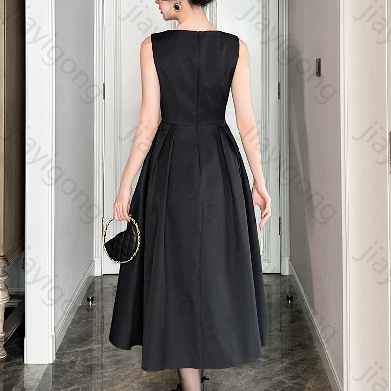 Robe de soirée trapèze élégante, sans manches, noire, plissée, robe de célébrité, exquise, de haute qualité, robes de bal pour femmes, personnalisées |