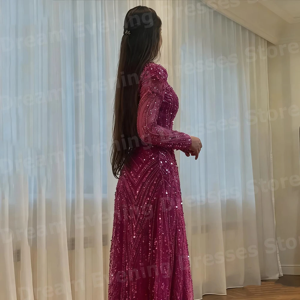 Robe De Soirée trapèze scintillante pour femmes, col rond, manches longues, personnalisée, robes De bal à paillettes |