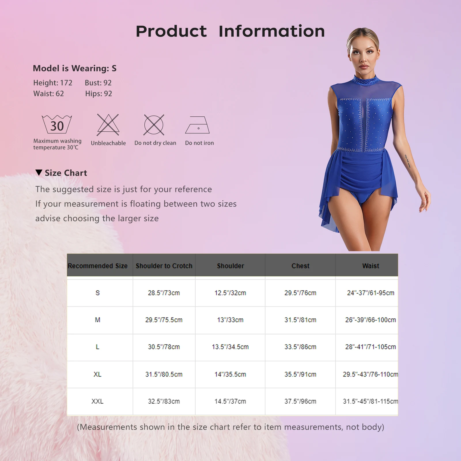 Robe justaucorps de danse lyrique pour femmes, strass scintillants, sans manches, Costume de patinage artistique pour spectacle sur scène de gymnastique |