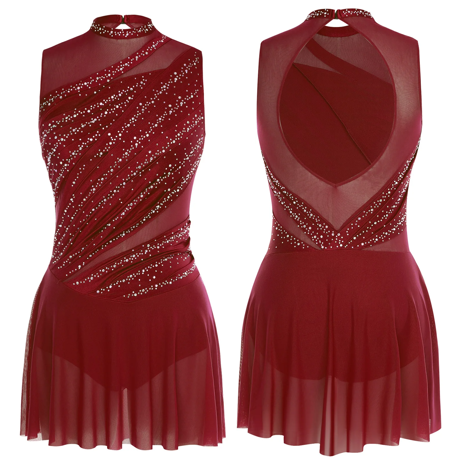 Robe justaucorps de danse lyrique pour femmes, strass scintillants, sans manches, Costume de patinage artistique pour spectacle sur scène de gymnastique