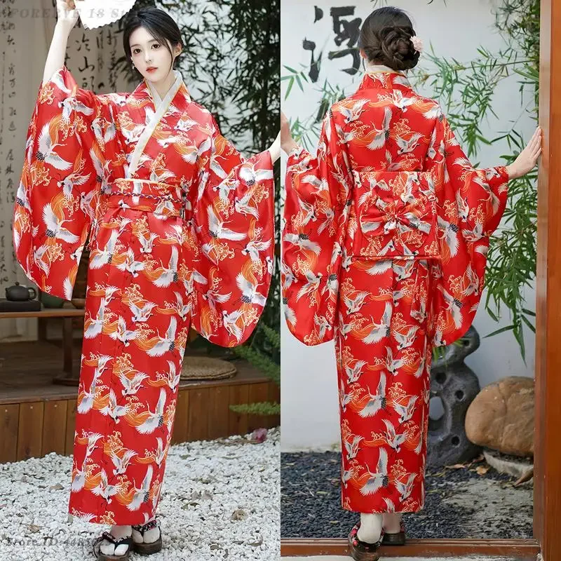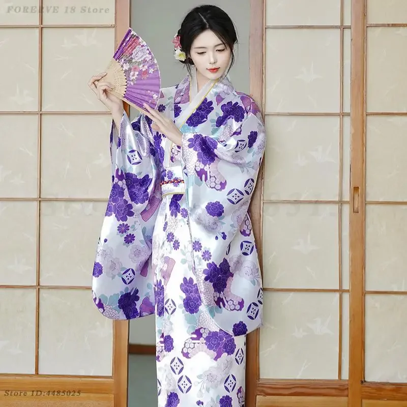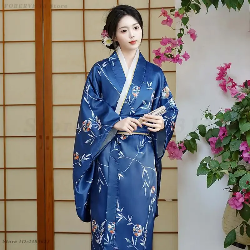 Robe Kimono japonaise, Costume de Cosplay pour femmes, Kimono bleu Vintage, Style asiatique, Yukata Sexy avec robes Geisha imprimées Obi |