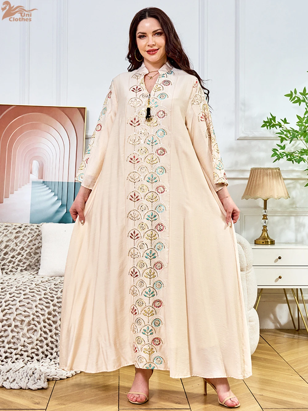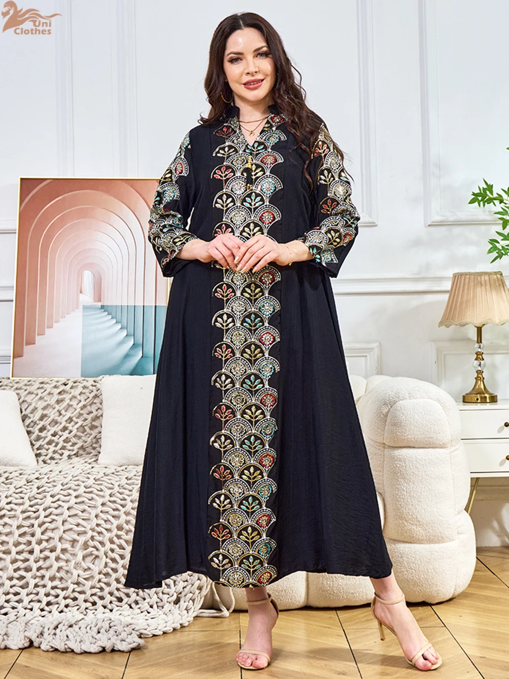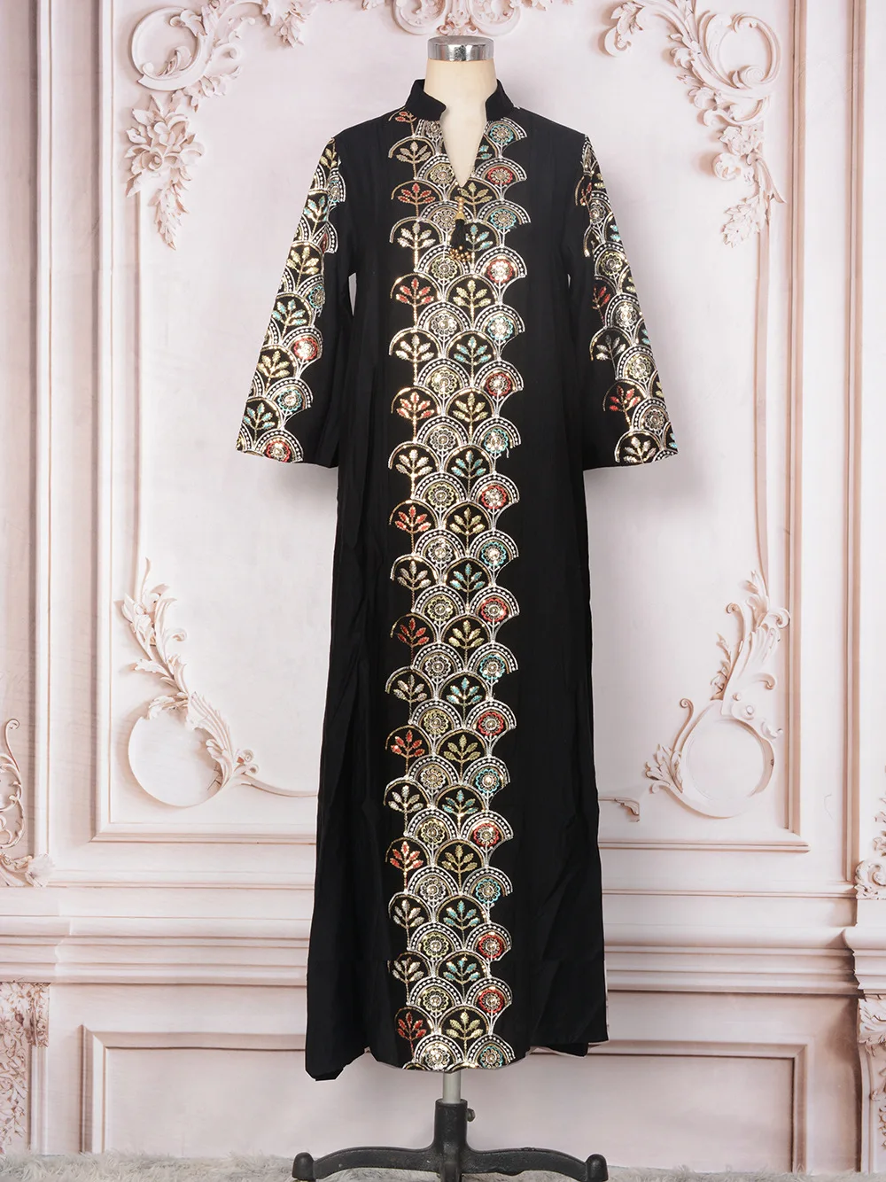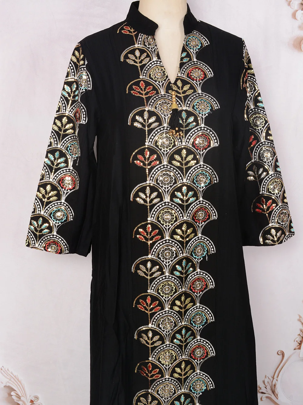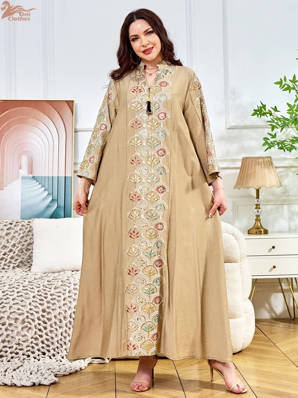 Robe longue à paillettes brodées pour femmes musulmanes, Abaya marocaine, Kaftan de Dubaï, Abayas islamiques, Robe éducative Eid, Robes de soirée modestes, Jalabiya |