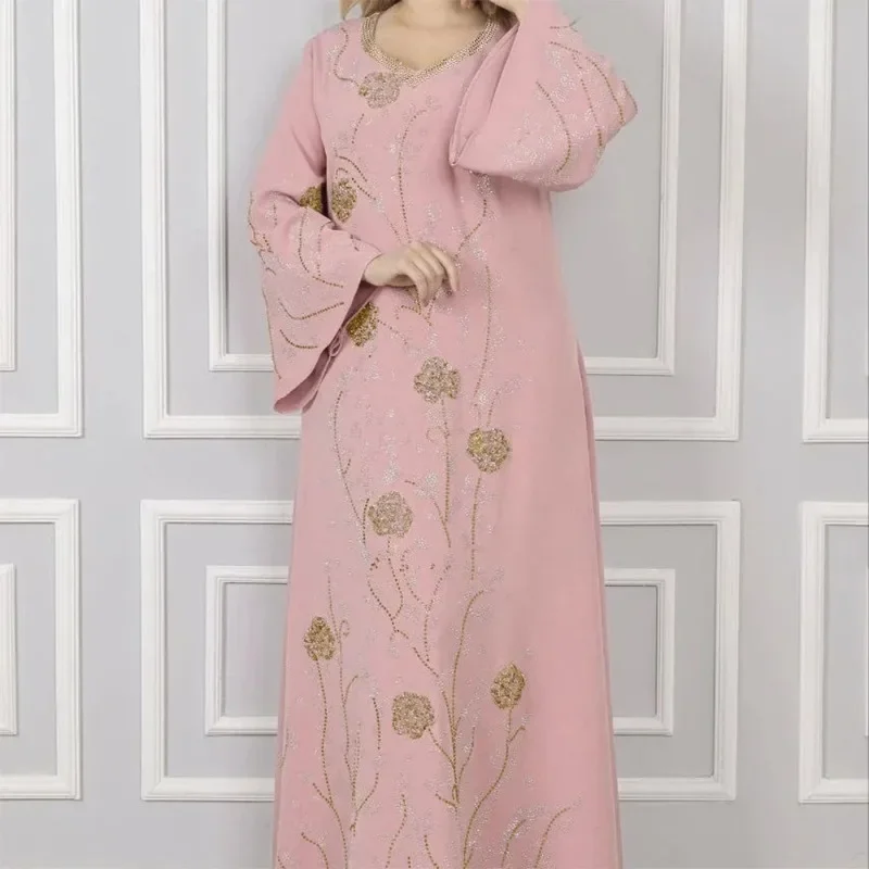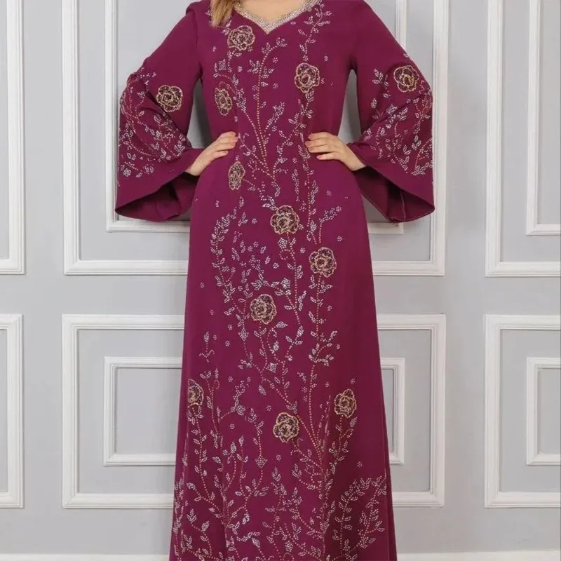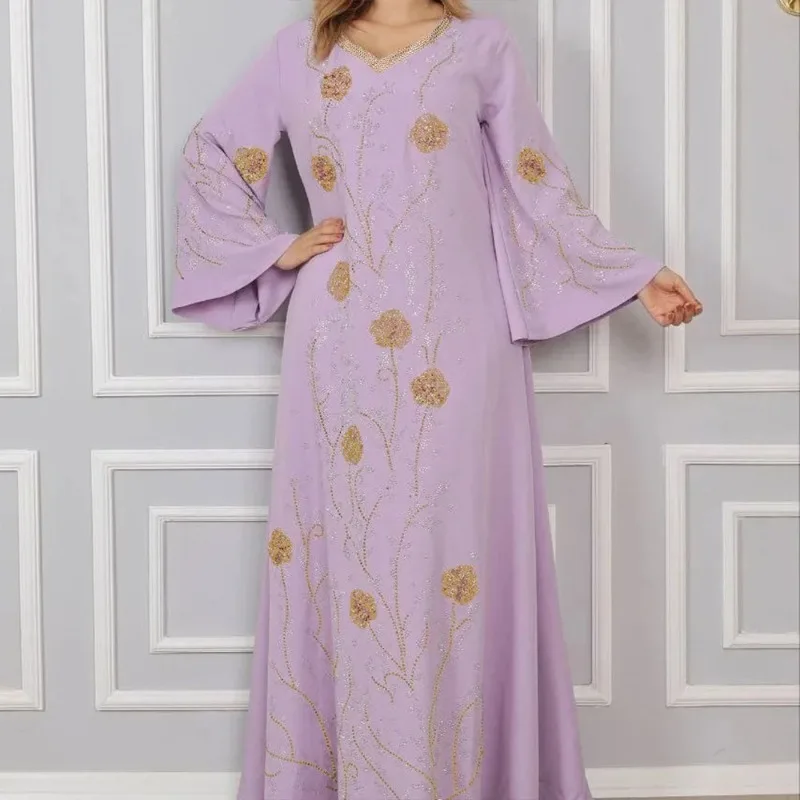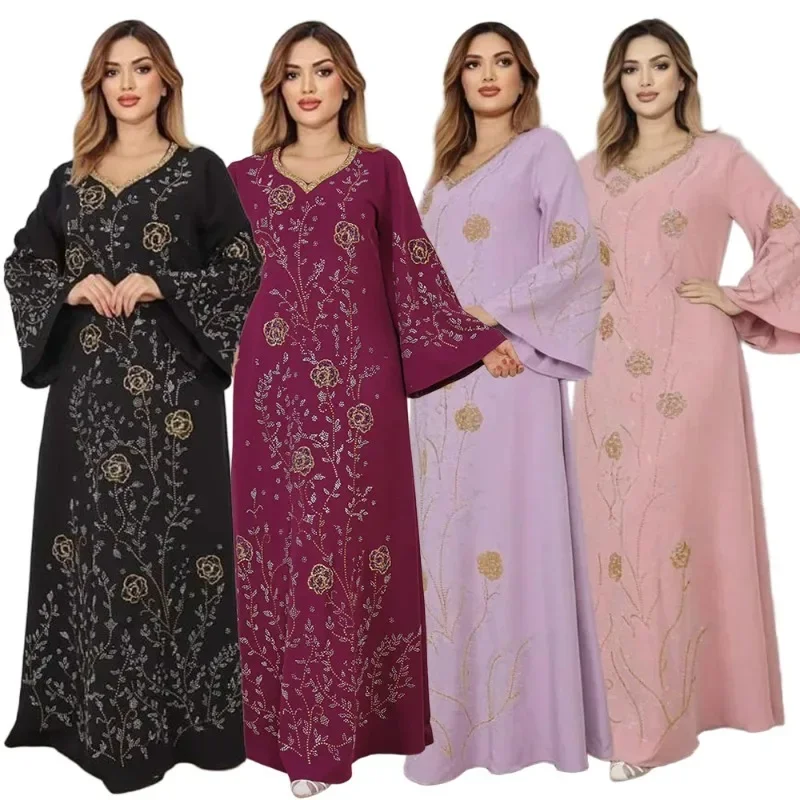 Robe longue Abaya pour femmes, avec strass, estampage à chaud, jupe longue élégante et ample pour les déplacements |