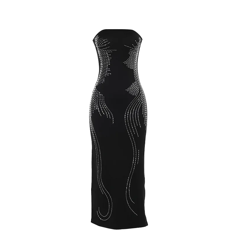 Robe longue de soirée décontractée, épaules dénudées, Sexy, Maxi, sans bretelles, sans manches, dos nu, moulante, paillettes, nouvelle collection 2025