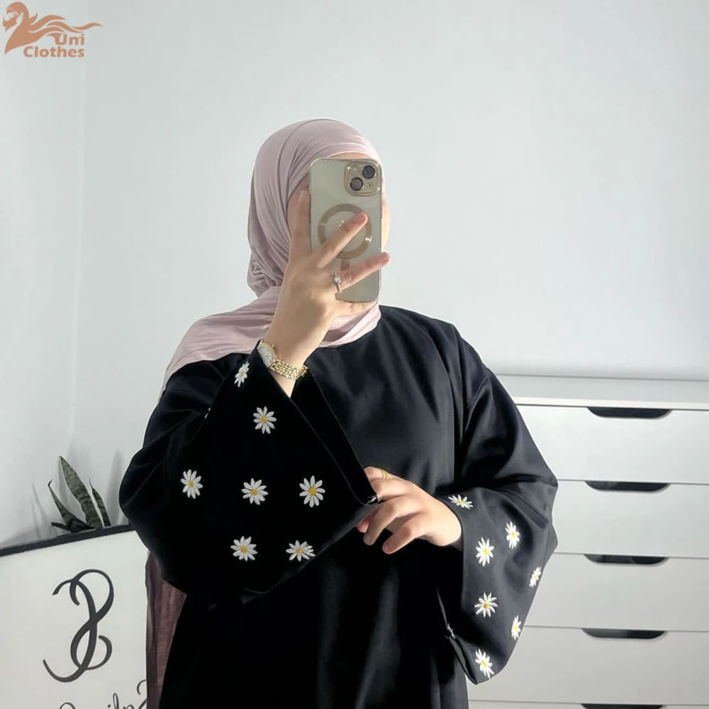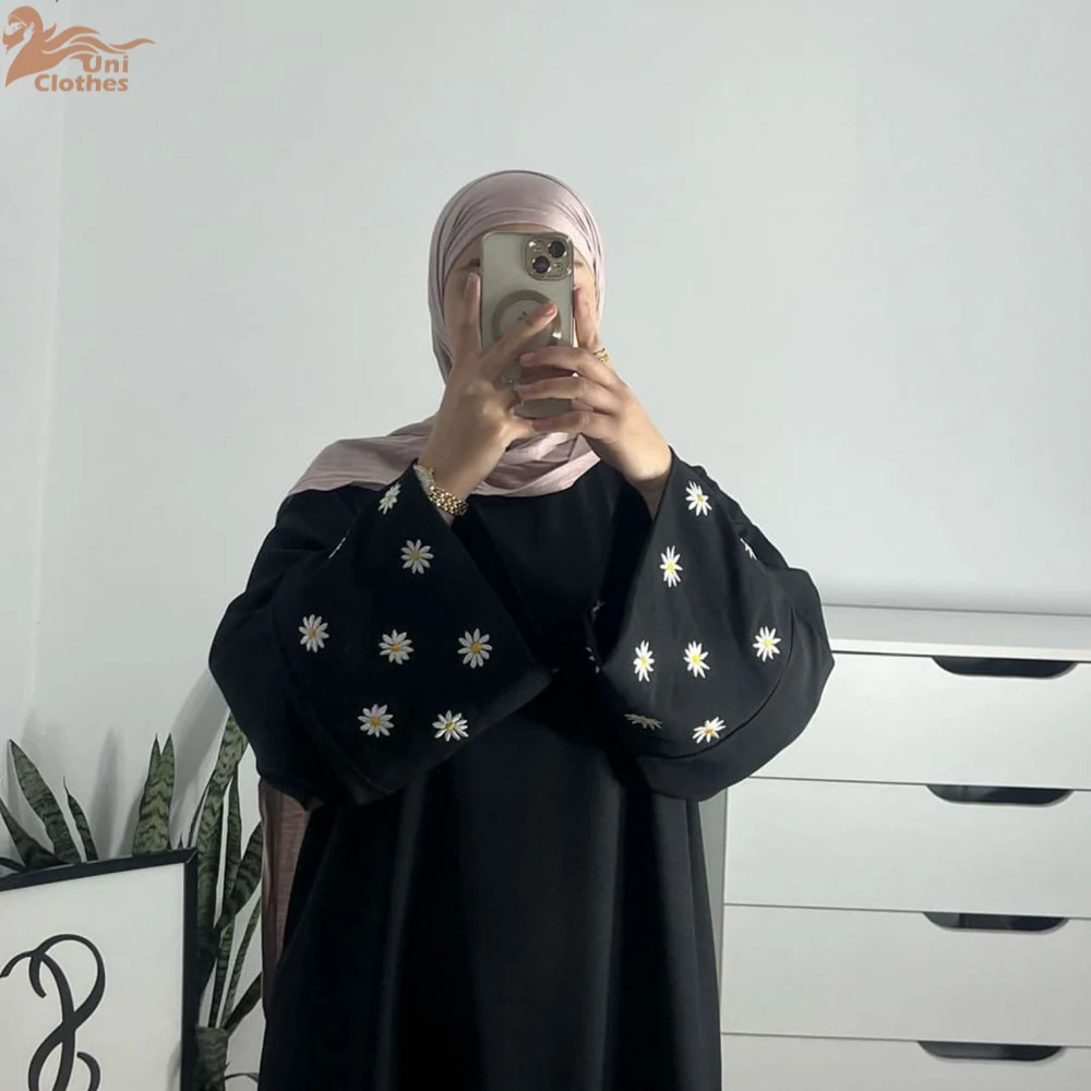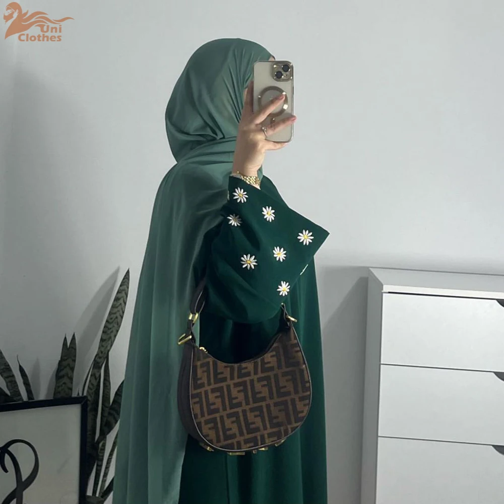 Robe modeste musulmane brodée de marguerites pour femmes, Eid, arabie saoudite, dubaï, Abaya, luxe, Islam, turquie, fête de vacances, Jalabiya, 2025Robe modeste musulmane brodée de marguerites pour femmes, Eid, arabie saoudite, dubaï, Abaya, luxe, Islam, turquie, fête de vacances, Jalabiya, 2025