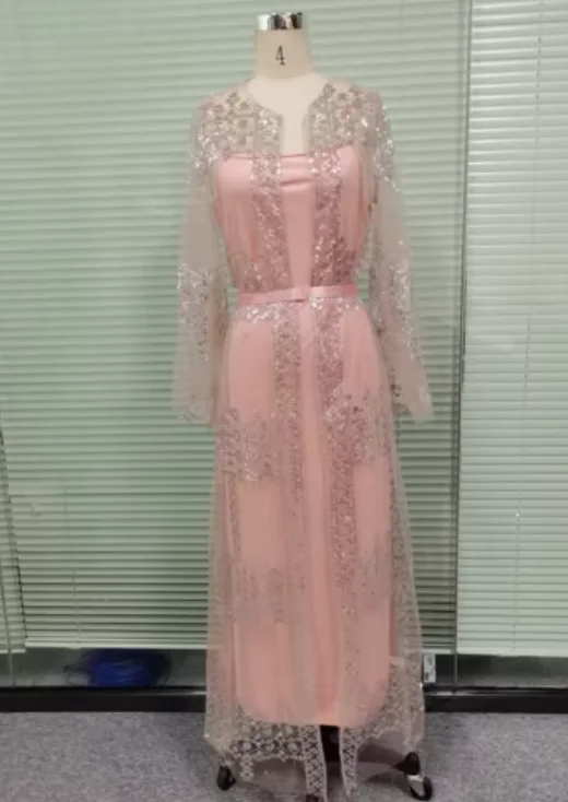 Robe musulmane de luxe avec broderie en dentelle et paillettes, abaya, dubaï, ramadan, caftan, Isla, vêtements africains, ensemble de 2 pièces, 2025 |