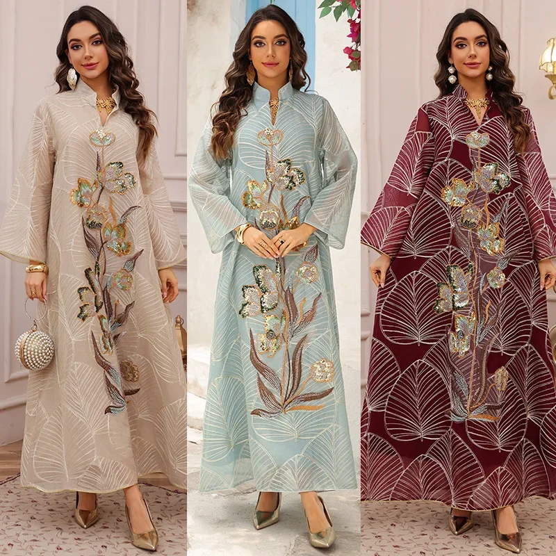 Nouveau arabe marocain robe musulmane Abaya femmes broderie Maxi Abayas dubaï turquie Islam caftan Longue Musulmane robes Largos 2025 |