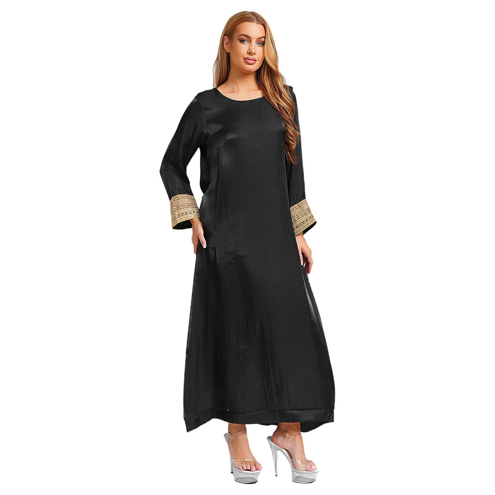 Robe pull pour femmes, caftan brillant, Abaya arabe musulman, manches longues, ample, dubaï, arabie saoudite, moyen-orient, Maxi |