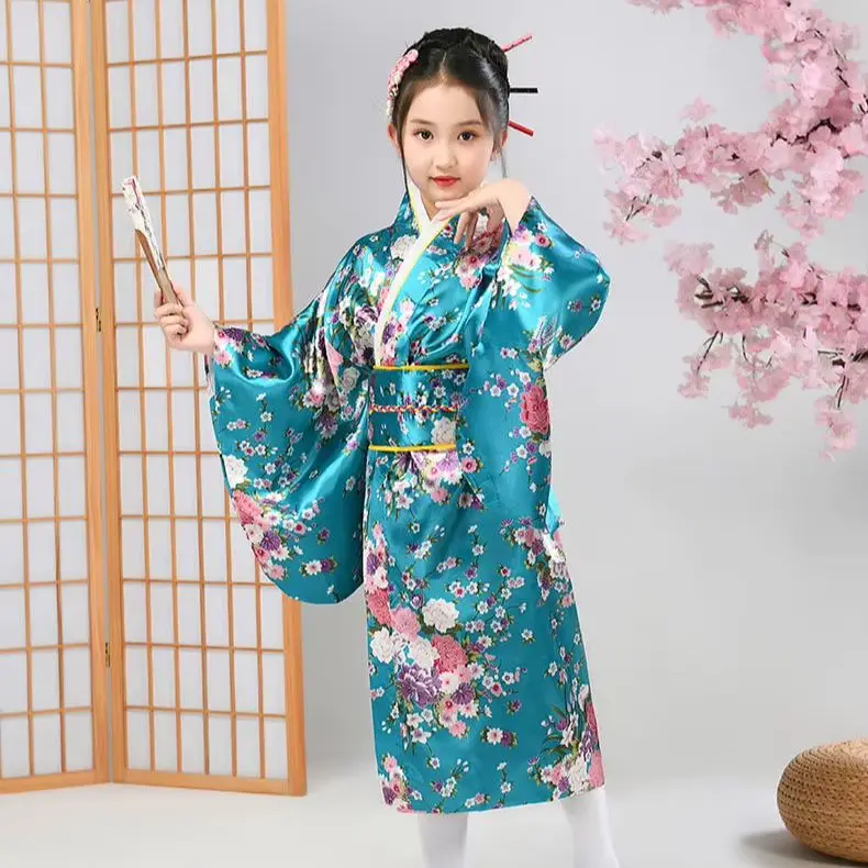 Robe traditionnelle Kimono japonaise pour enfants, Costume féminin, Robe Yukata imprimée, spectacle pour élèves du primaire |
