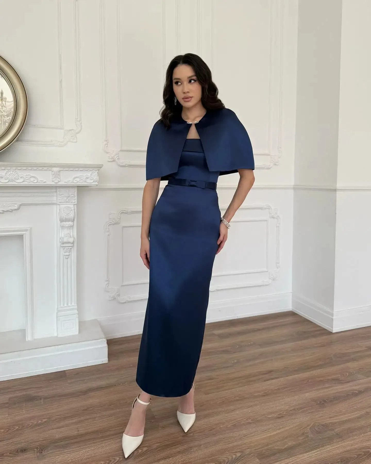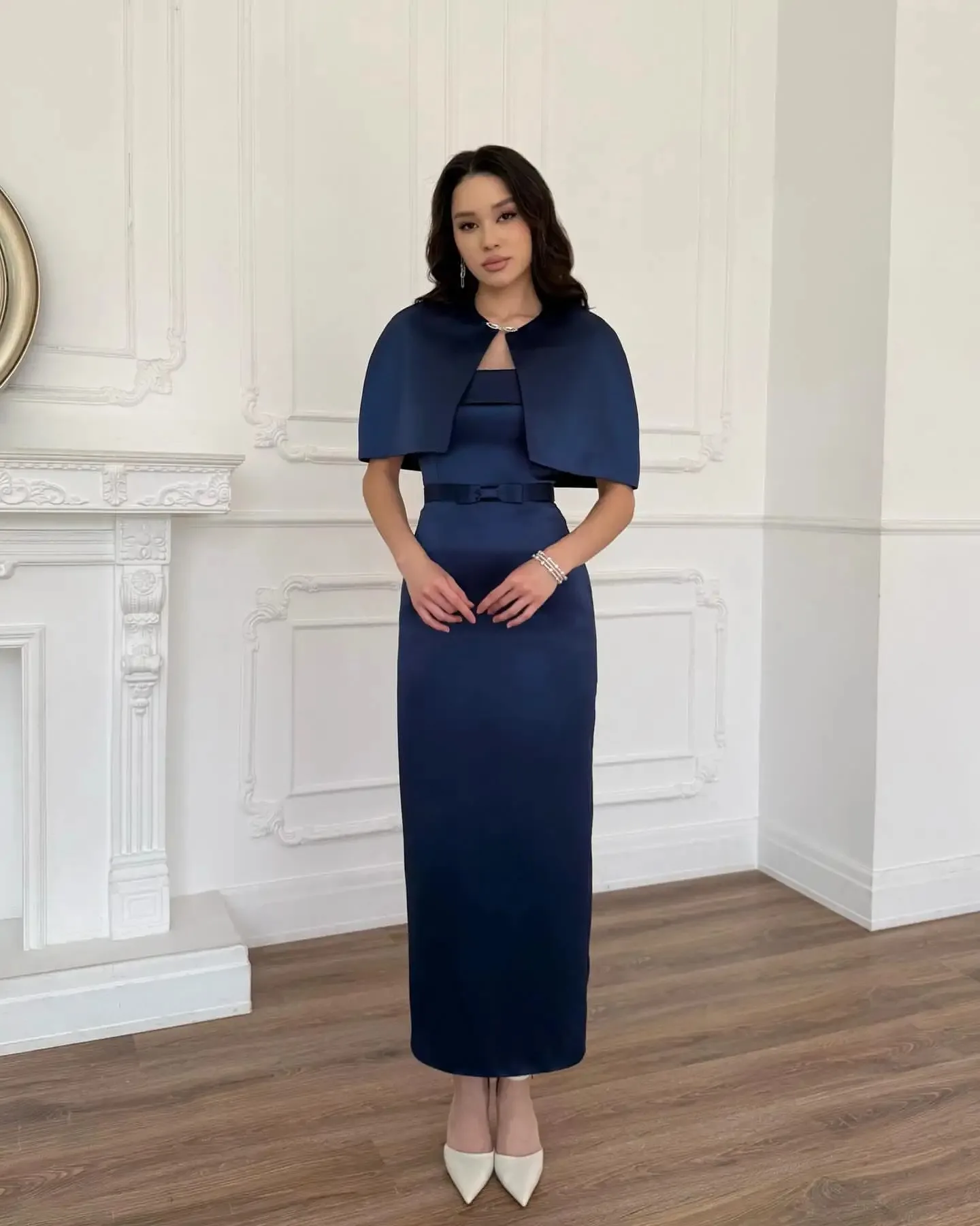 Robes de soirée arabes personnalisées indépendantes, avec manches Cape, longueur cheville, robe de bal sans bretelles, robes de fête de mariage pour femmes de dubaï |