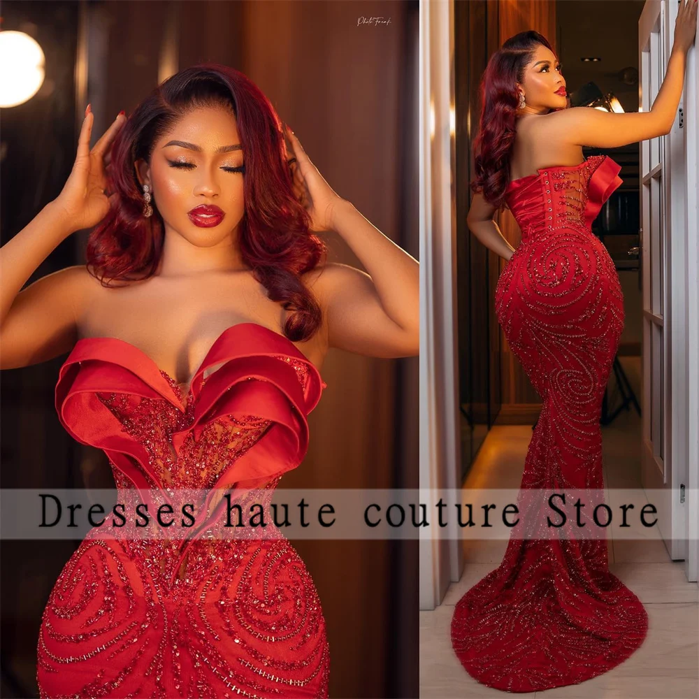Robes de soirée sirène en dentelle perlée nigwin, Aso Ebi Rotterdam, robe de Rhchérie, robe de soirée de mariage personnalisée, rouge kly, quelle que soit, 2025 |