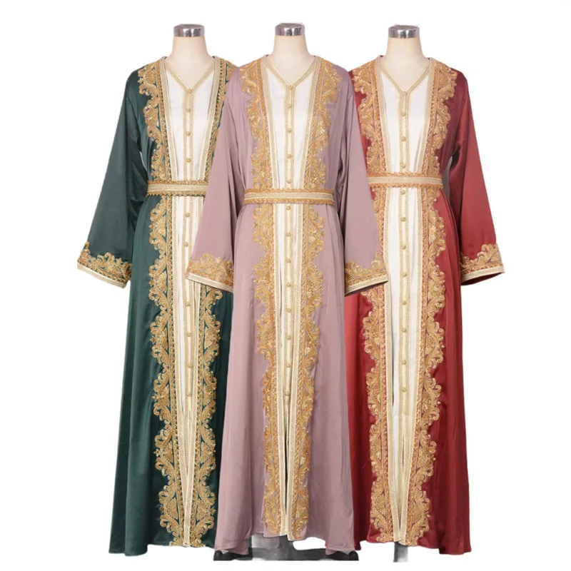 Robes Maxi 2 pièces ensembles Eid Abayas musulmanes pour les femmes dubaï fête longue Robe perles Jalabiya maroc caftan Ramadan robes