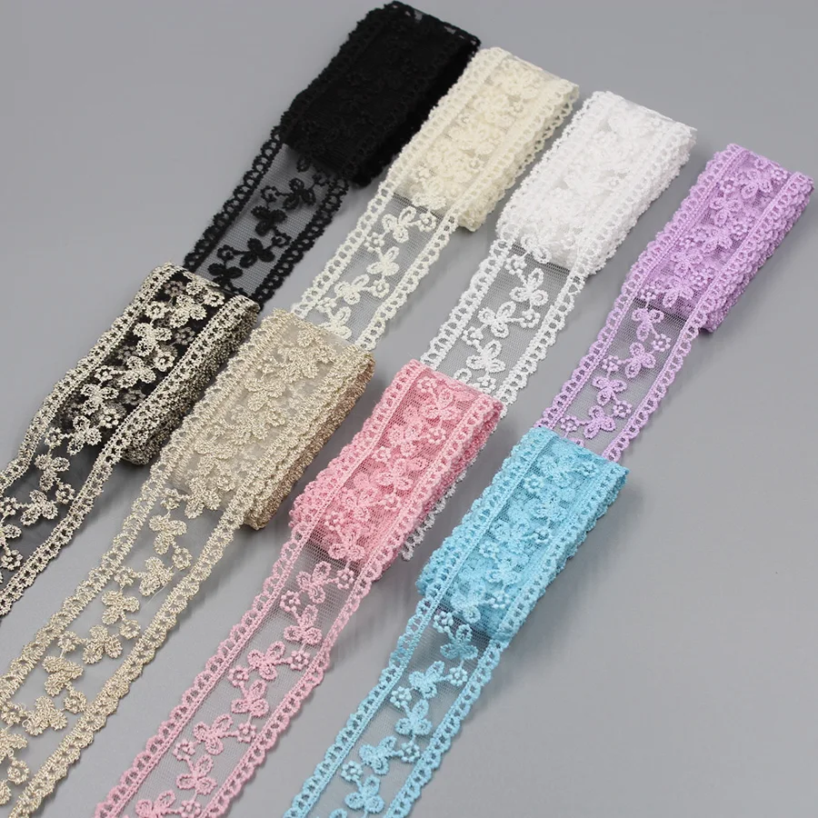 Ruban coloré blanc beige noir pour mariage, cadeau de fête, fleur, robe à coudre ouvertement, tissu en dentelle, accessoires de bricolage, 2 mètres |