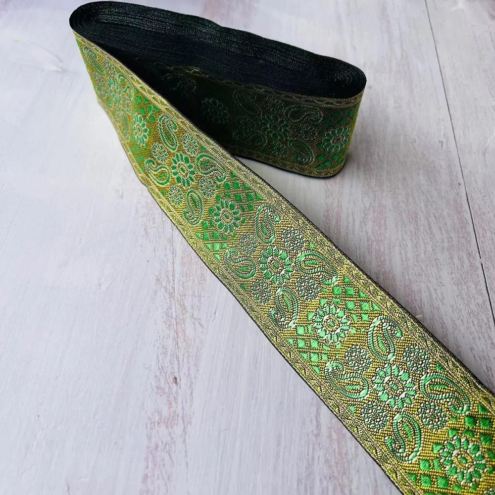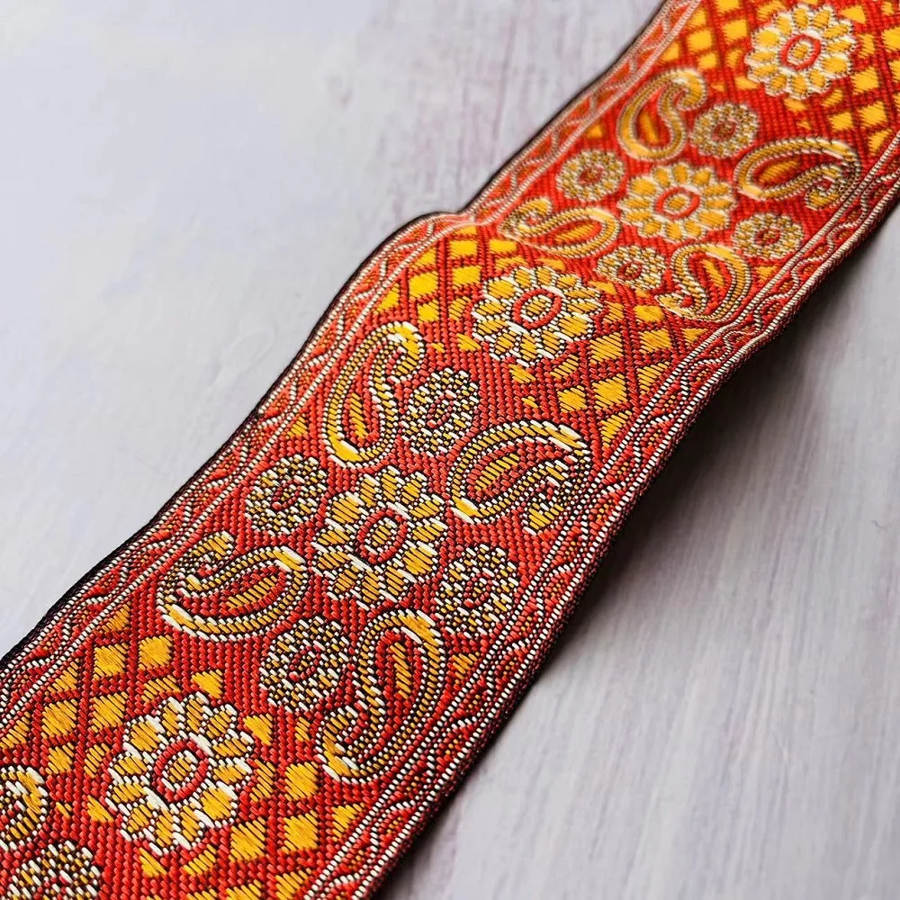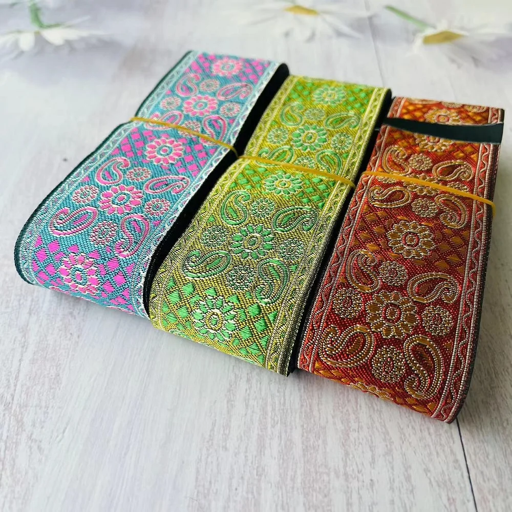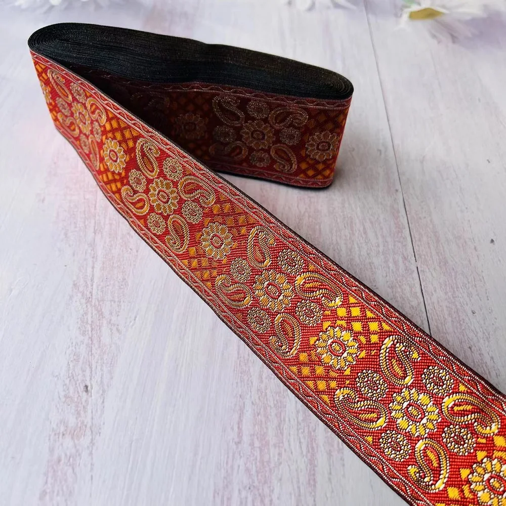 Ruban Jacquard tissé en Polyester, largeur d’environ 5cm, 10yards/lot, motif de fleurs paisley pour rideaux et vêtements, accessoire