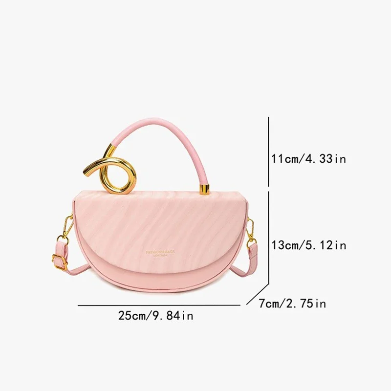 Sac à bandoulière de luxe motif litchi pour femmes, nouvelle poignée en métal, sac Hobo, pochette de soirée, sac à bandoulière demi-lune de styliste