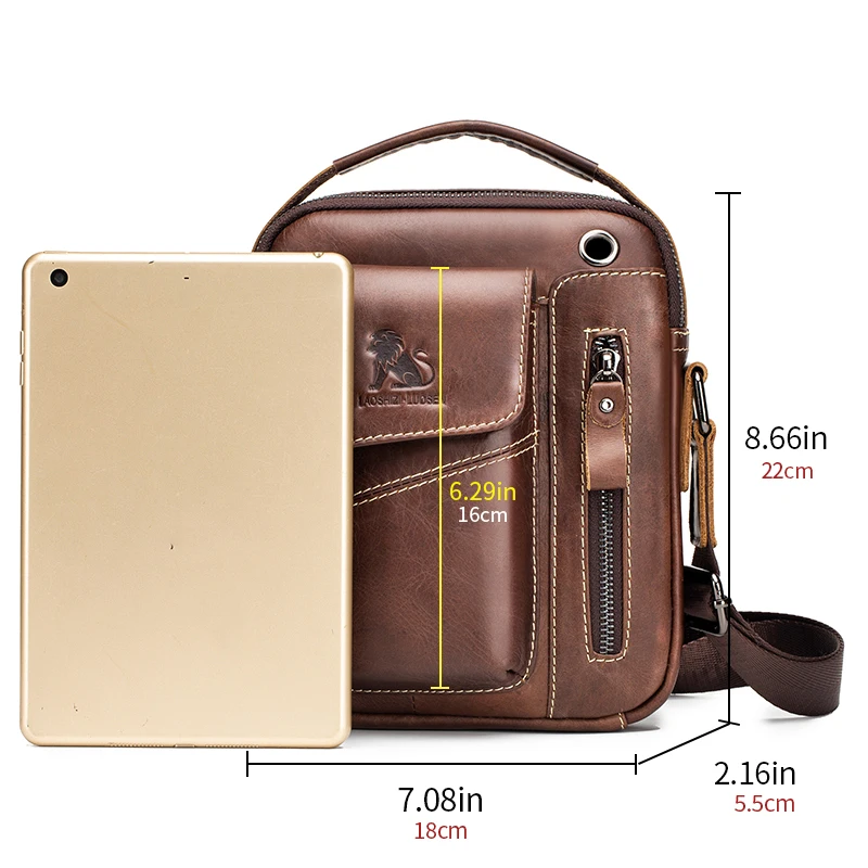 Sac à bandoulière en cuir pour hommes, sac à bandoulière multifonctionnel et en cuir de vache de grande capacité, sac à main |