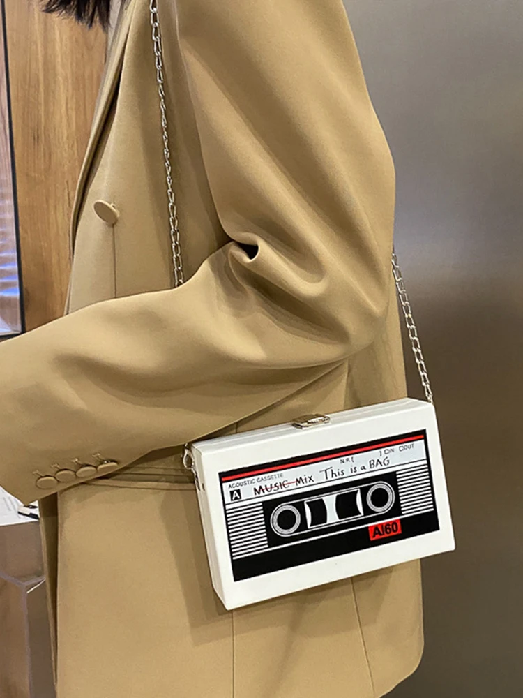 Sac à bandoulière en cuir PU pour femmes, mignon, en forme de Radio, Mini chaîne, enregistreur de bande imprimé, sac de transport quotidien pour dames |