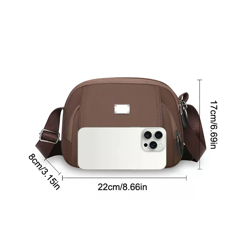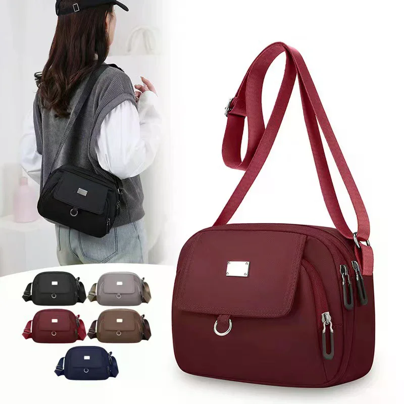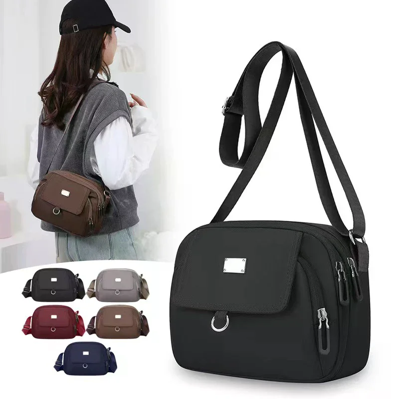 Sac à bandoulière en nylon chic et léger pour femme, mini sac à main décontracté avec plusieurs pochettes zippées pour un usage quotidien