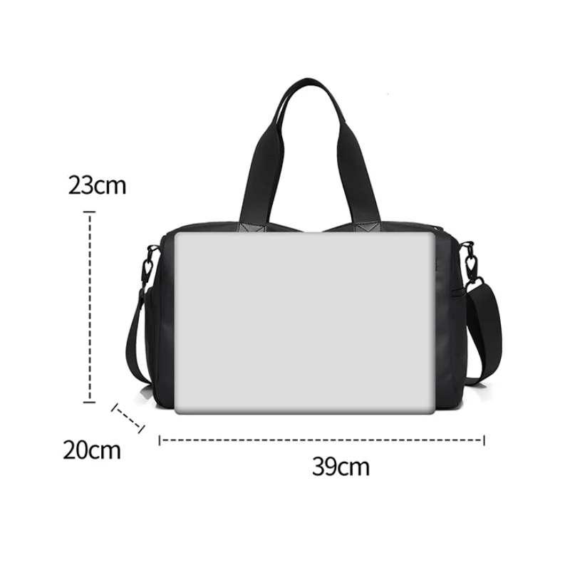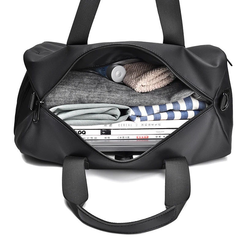 Sac à bandoulière noir à sangle réglable, sac de fitness, sac de voyage, avec poches zippées, idéal pour les sports et les sorties décontractées