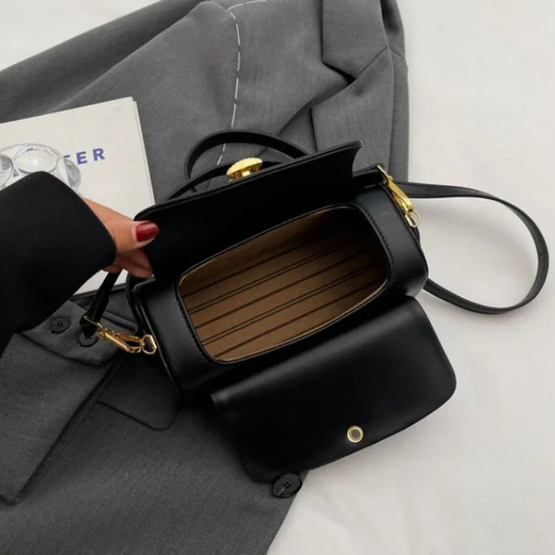 Sac à bandoulière rétro classique pour femme, sac à main à rabat, sacs carrés, grande capacité, cuir texturé, initié, noir, polyvalent, nouveau, 2024