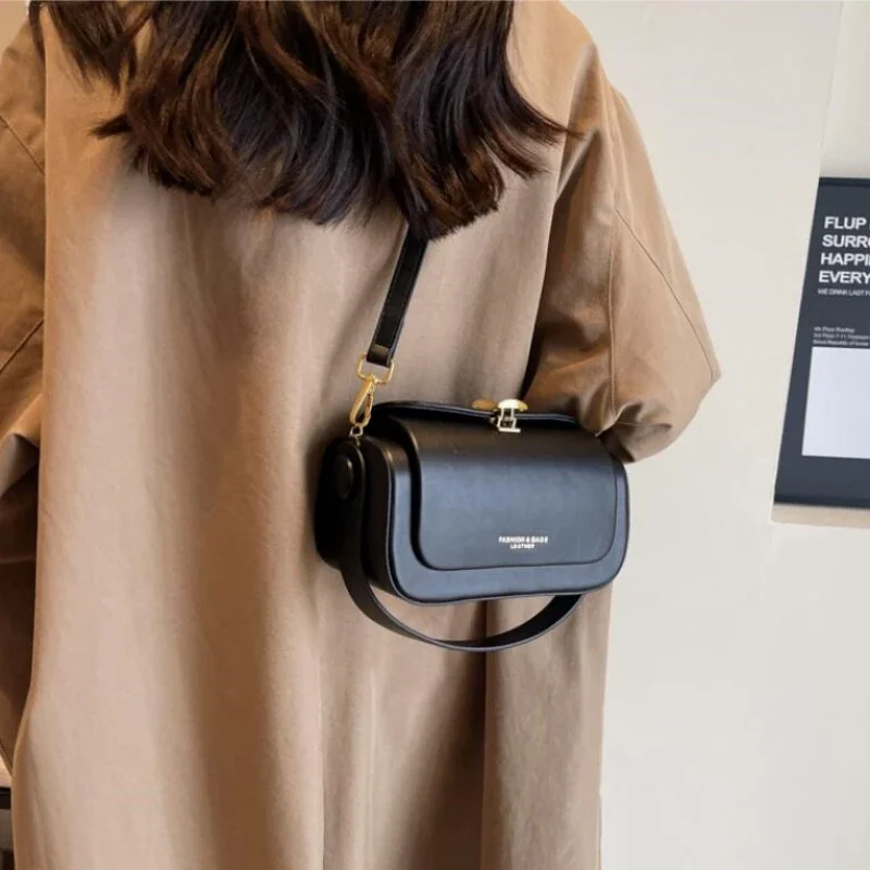 Sac à bandoulière rétro classique pour femme, sac à main à rabat, sacs carrés, grande capacité, cuir texturé, initié, noir, polyvalent, nouveau, 2024 |