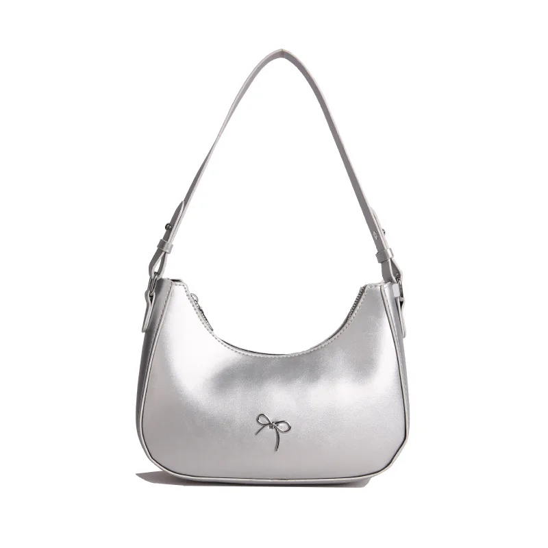 Sac à bandoulière simple pour femmes, style coréen avec décoration d’arc, sac à la mode en forme de croissant pour les déplacements décontractés