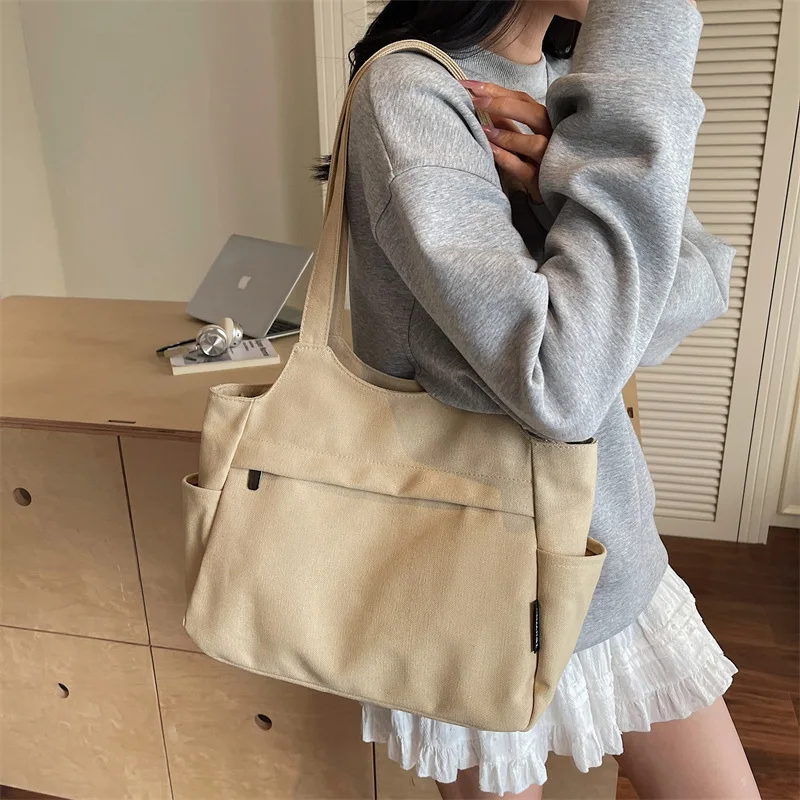 Sac à bandoulière Vintage de grande capacité, couleur unie, sac en toile à la mode et polyvalent, fourre-tout Simple |