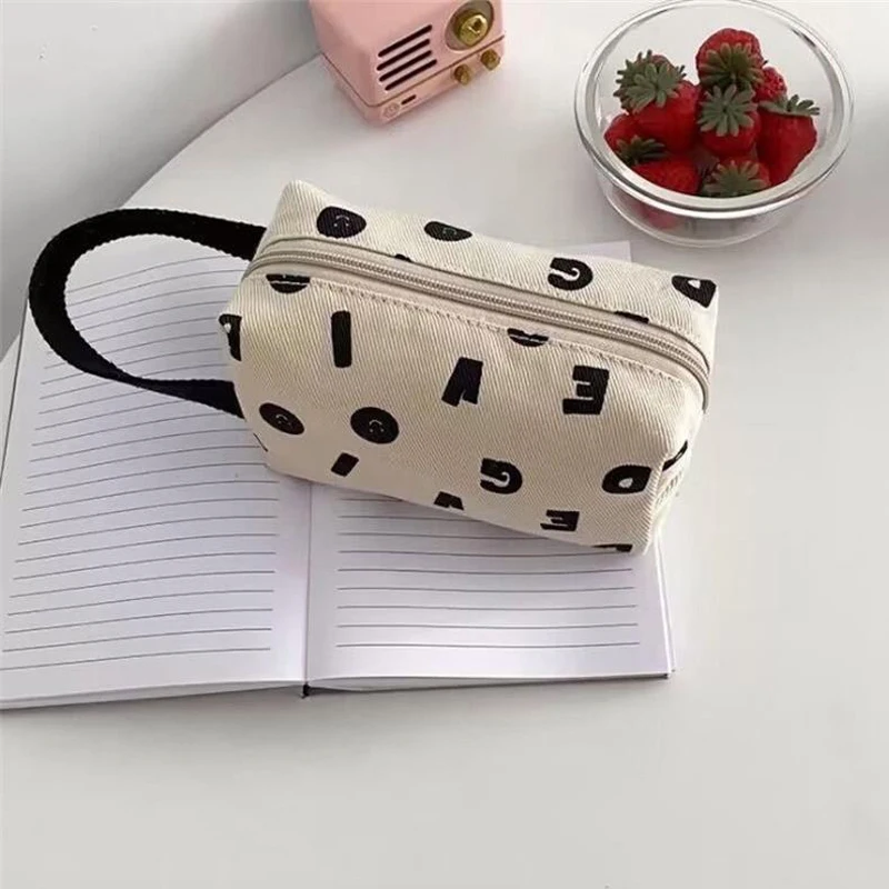Sac à cosmétiques avec lettres beiges simples, sac à main de mode, voyage, toilette Portable, grande capacité, sac d'alpinisme, cadeaux de noël |