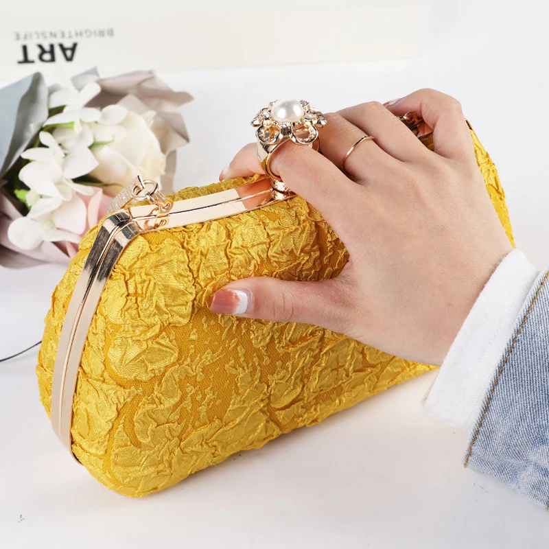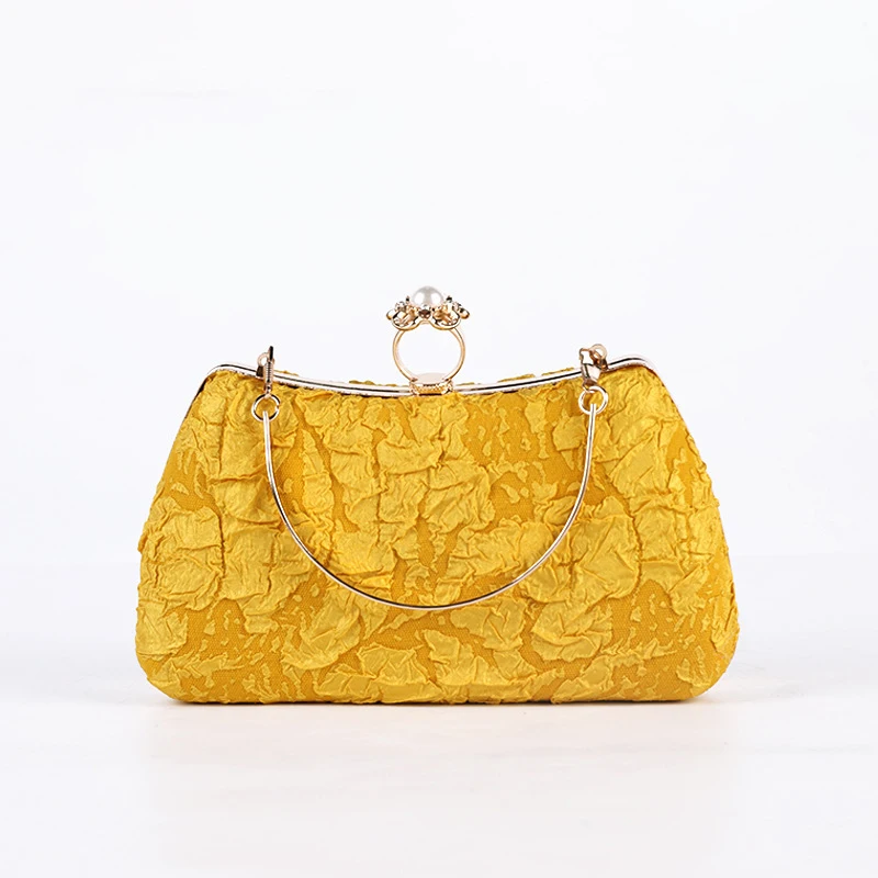 Sac à main d’embrayage jaune pour femme, sac à main croisé, portefeuilles de fête, mariage, créateur de luxe, perle, mode, initié