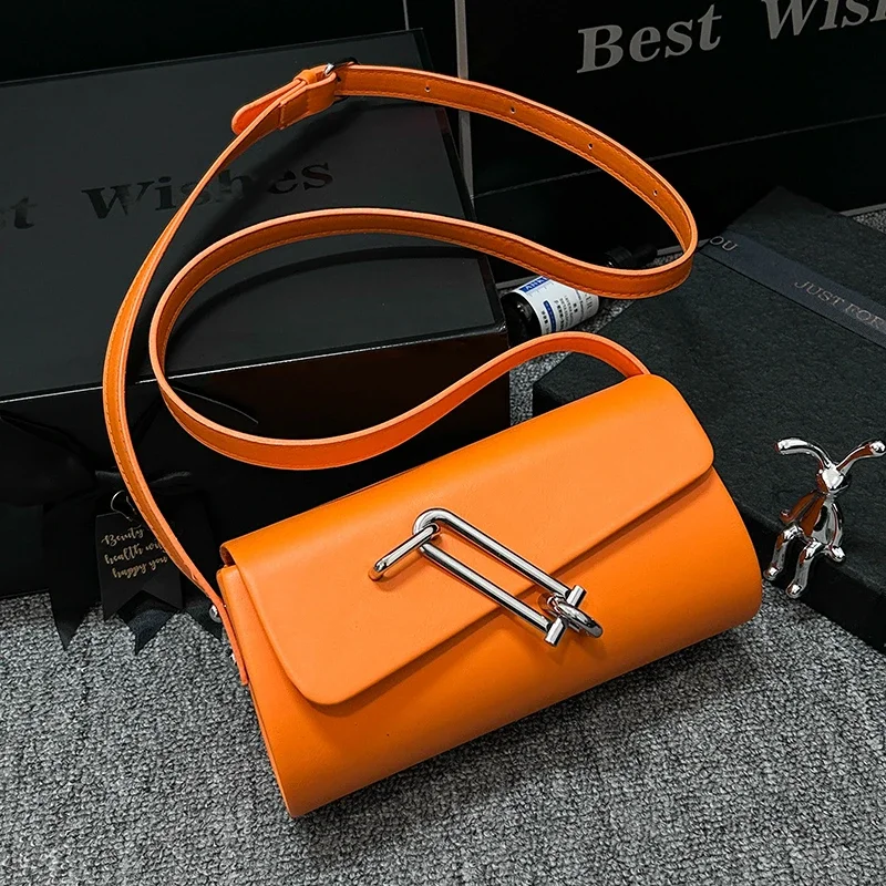 Sac à main en cuir PU solide pour femme, sac orange vert initié à la mode, sac à bandoulière dégager design, petit sac à main de marque
