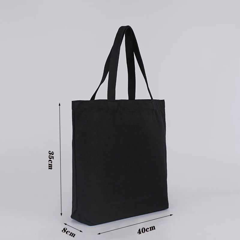Sac à Main en Toile Noire pour Étudiant, Sacoche en Coton Décontractée, de Grande Capacité, Solide, pour Documents et Cosmétiques |