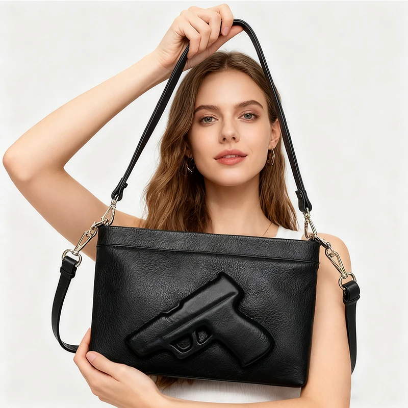 Sac à main imprimé avec LOGO pistolet, sac tactique rétro européen et américain pour femmes, sac à bandoulière très adapté au Shopping et aux voyages |