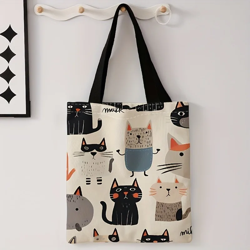 Sac à main imprimé chat noir pour femmes, sac à main à la mode en Polyester, sac de Shopping de plage pour femmes, sac à bandoulière à la mode pour usage quotidien