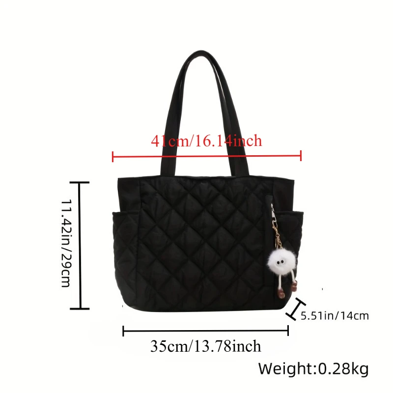 Sac à main noir de grande capacité avec motif carré, matériau matelassé durable et résistant aux rides, plusieurs poches pour un rangement facile |