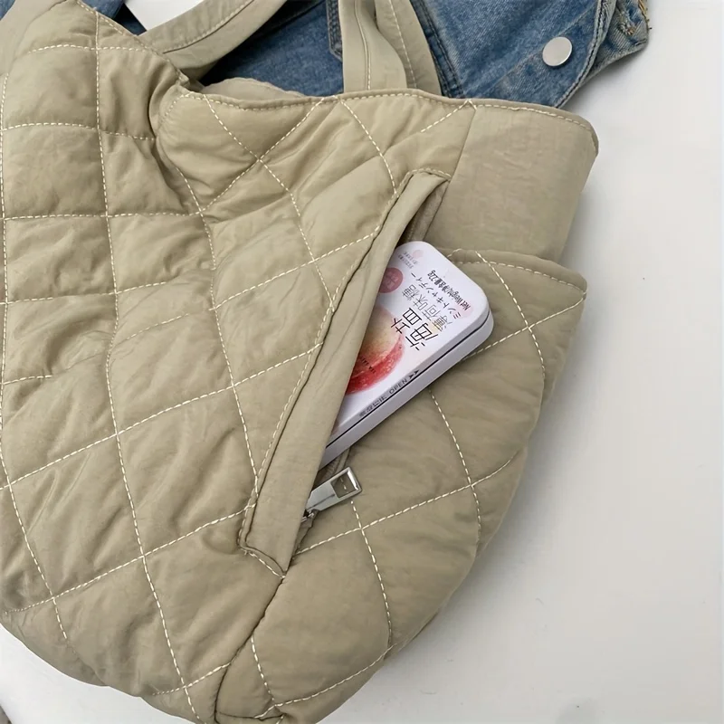 "J'adore ce sac à main ! Le motif carré est vraiment élégant et le matériau matelassé est très résistant. J'ai pu ranger facilement mes affaires grâce aux multiples poches. Le sac est spacieux tout en restant léger, ce qui est très pratique au quotidien. La seule petite chose que je regrette est que la fermeture éclair nécessite un peu de force pour l'ouvrir et la fermer, mais cela n'entache en rien la qualité globale du produit. Je recommande vivement ce sac à main, c'est un excellent achat !"