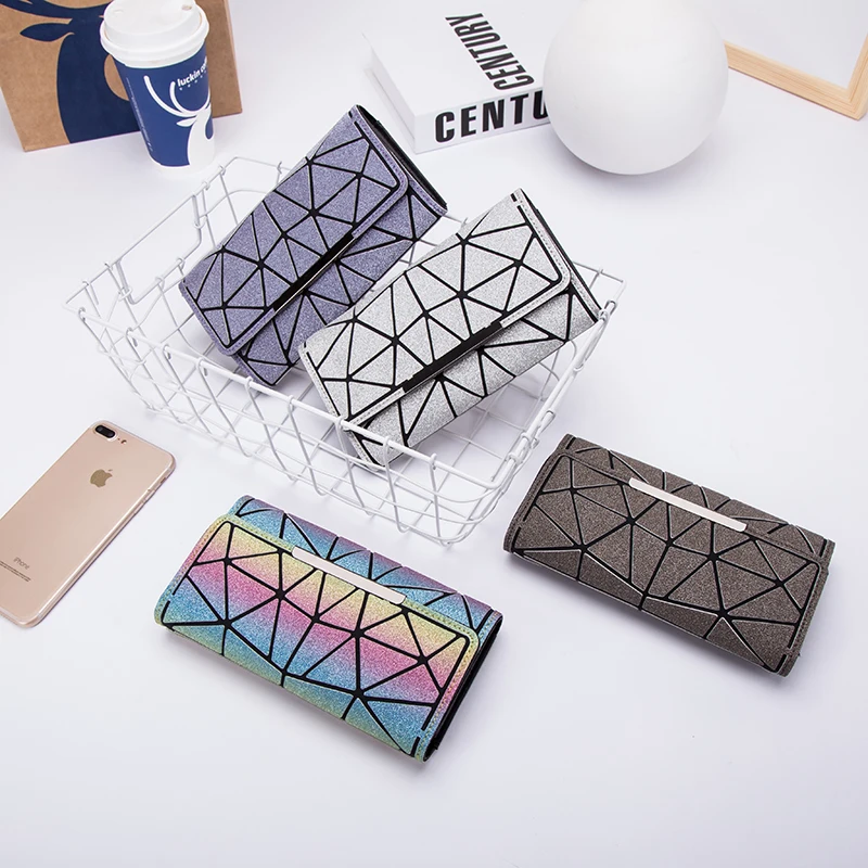 Sac à main portefeuille géométrique femmes longue pochette portefeuilles sac d'argent trois plis portefeuille dames porte-carte carteira portfel |