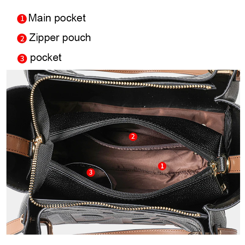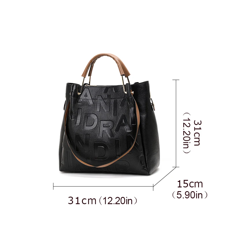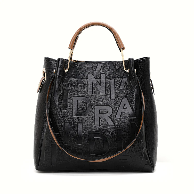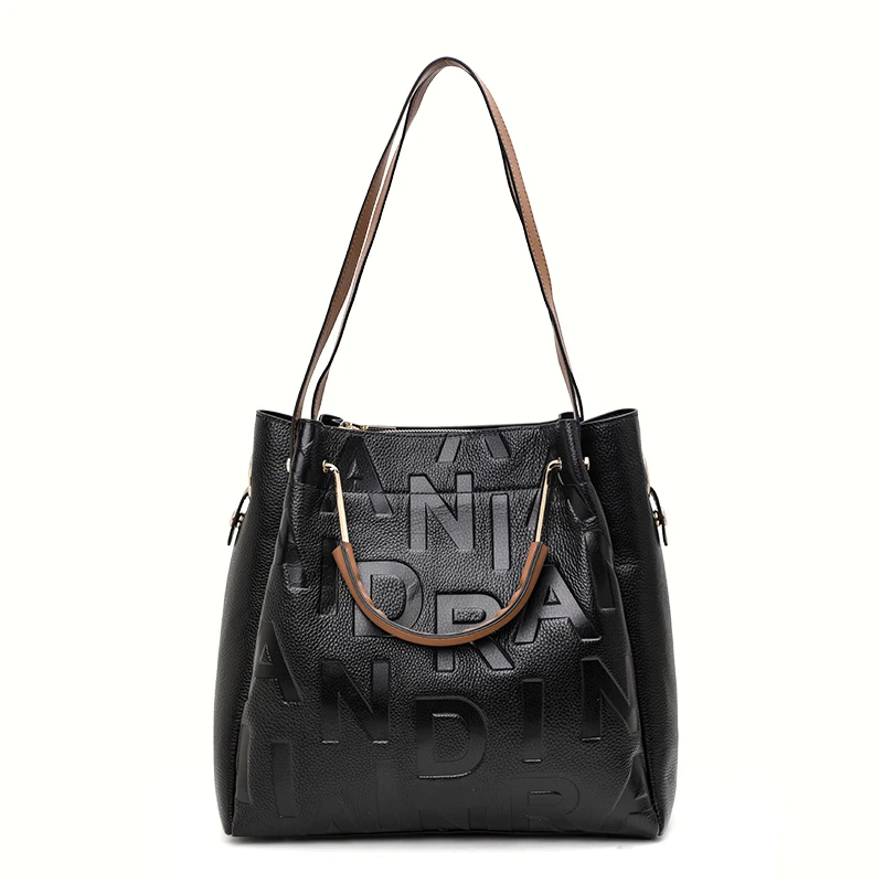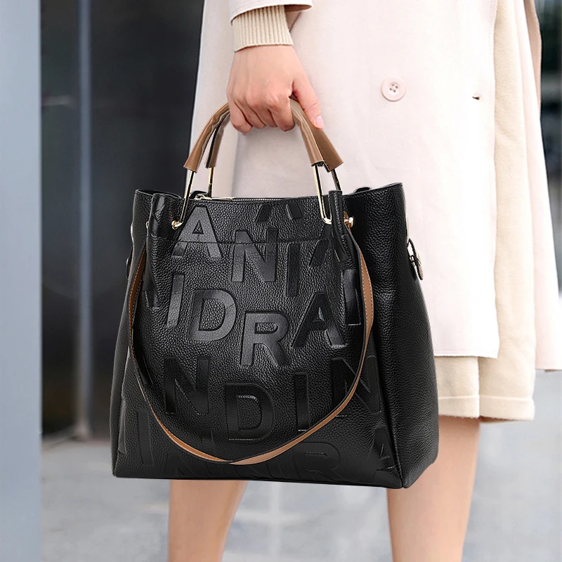 Sac à main pour femme noir haut de gamme en cuir de vache de haute qualité avec grande capacité et imprimé de lettres |